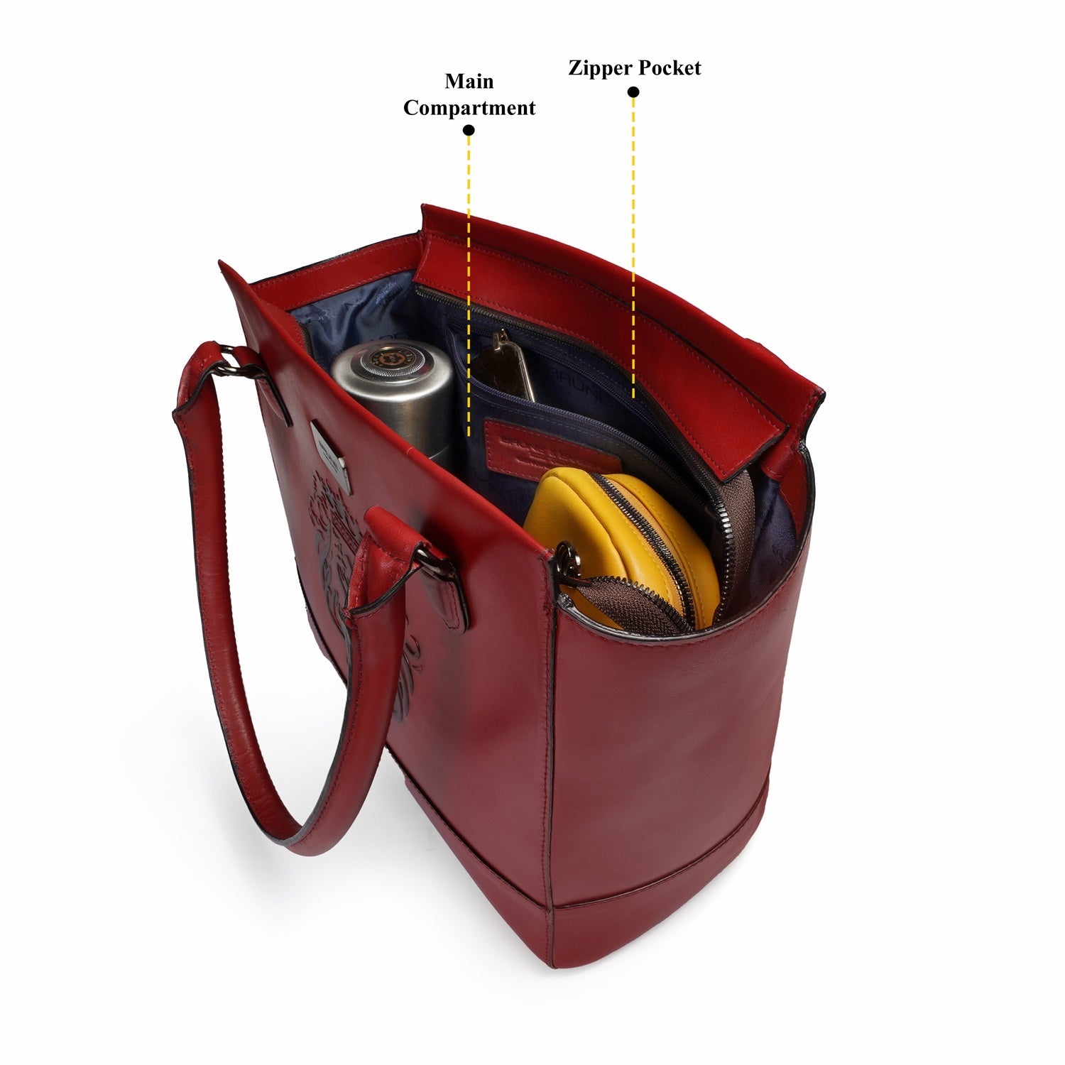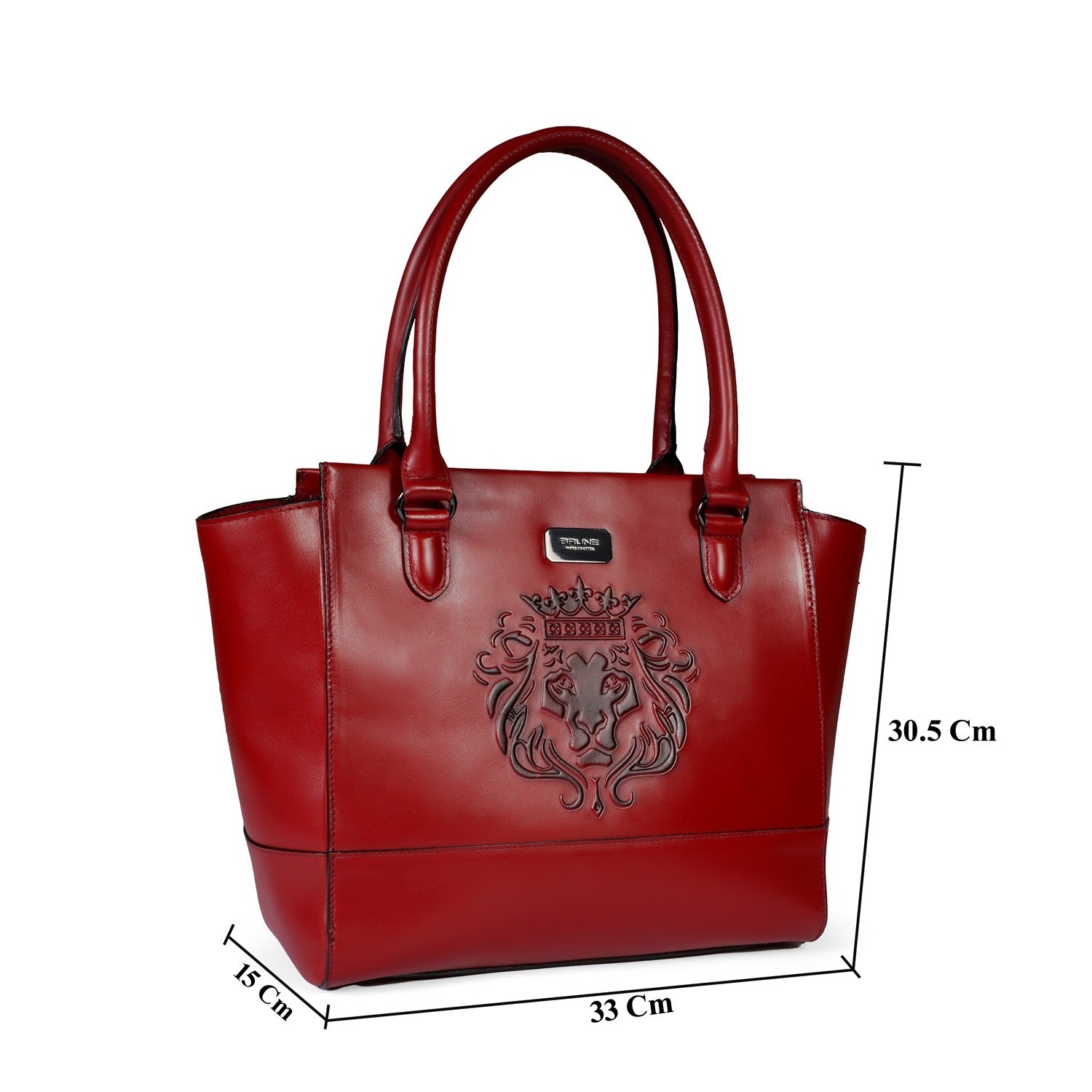 A luxurious take on the classic Tote by Brune & Bareskin, This large tote in Wine, Features a Zip-Top Closure, so you can keep all your belongings same. It comes with an internal zip pocket and two slip pockets. This hand bag can be personalized with your name initials in any color shade with our bespoke services. This is a must-have addition to your fashion collection. What are you waiting for? You can click on CUSTOMIZE NOW Button (Just above the "ADD TO CART" button) & fill out the form to submit your customization requirements. Or you can reach us by Call, Email, What's App, and DM.