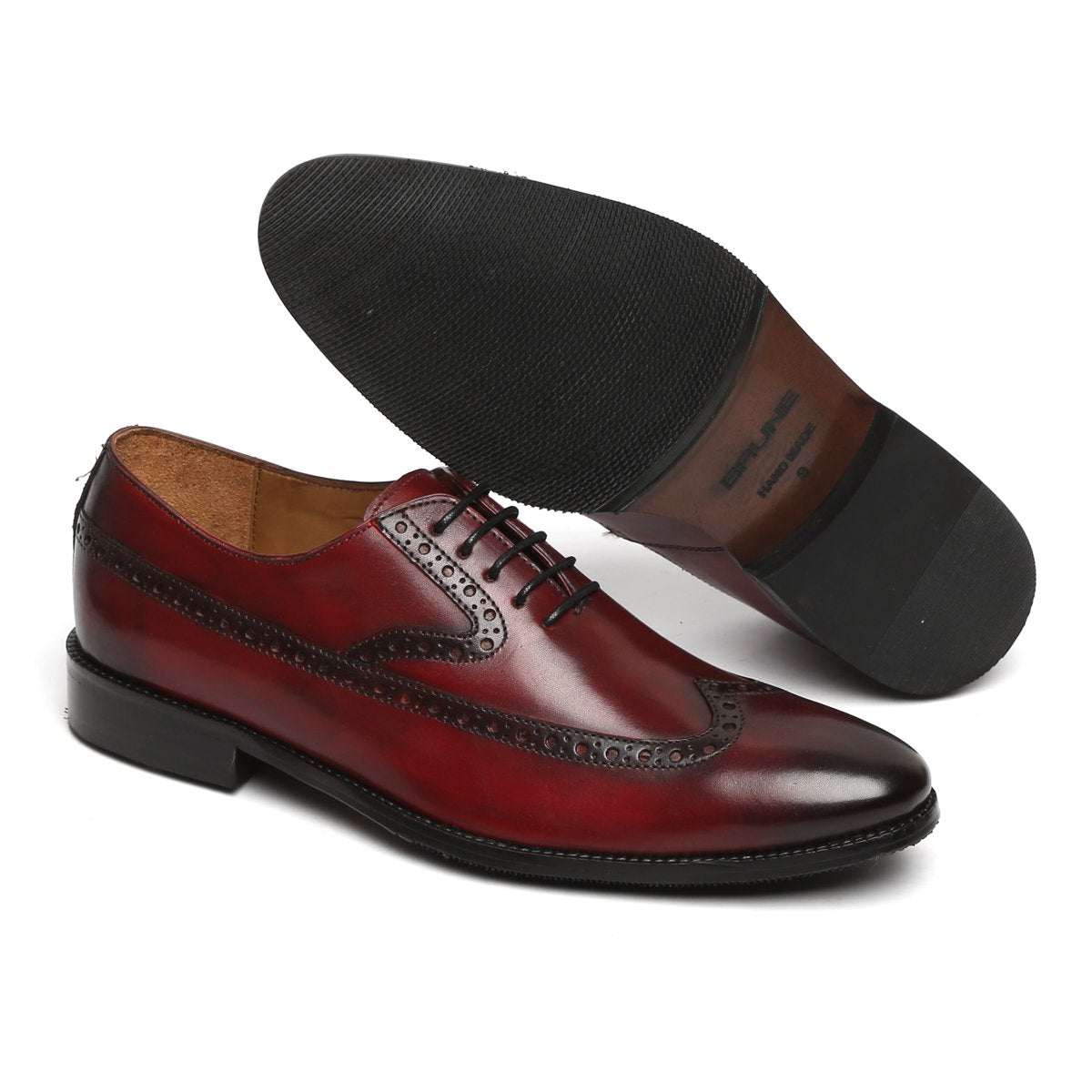 WINE LONG TAIL DESIGNER BROGUE LEATHER SHOES BY BRUNE & BARESKIN