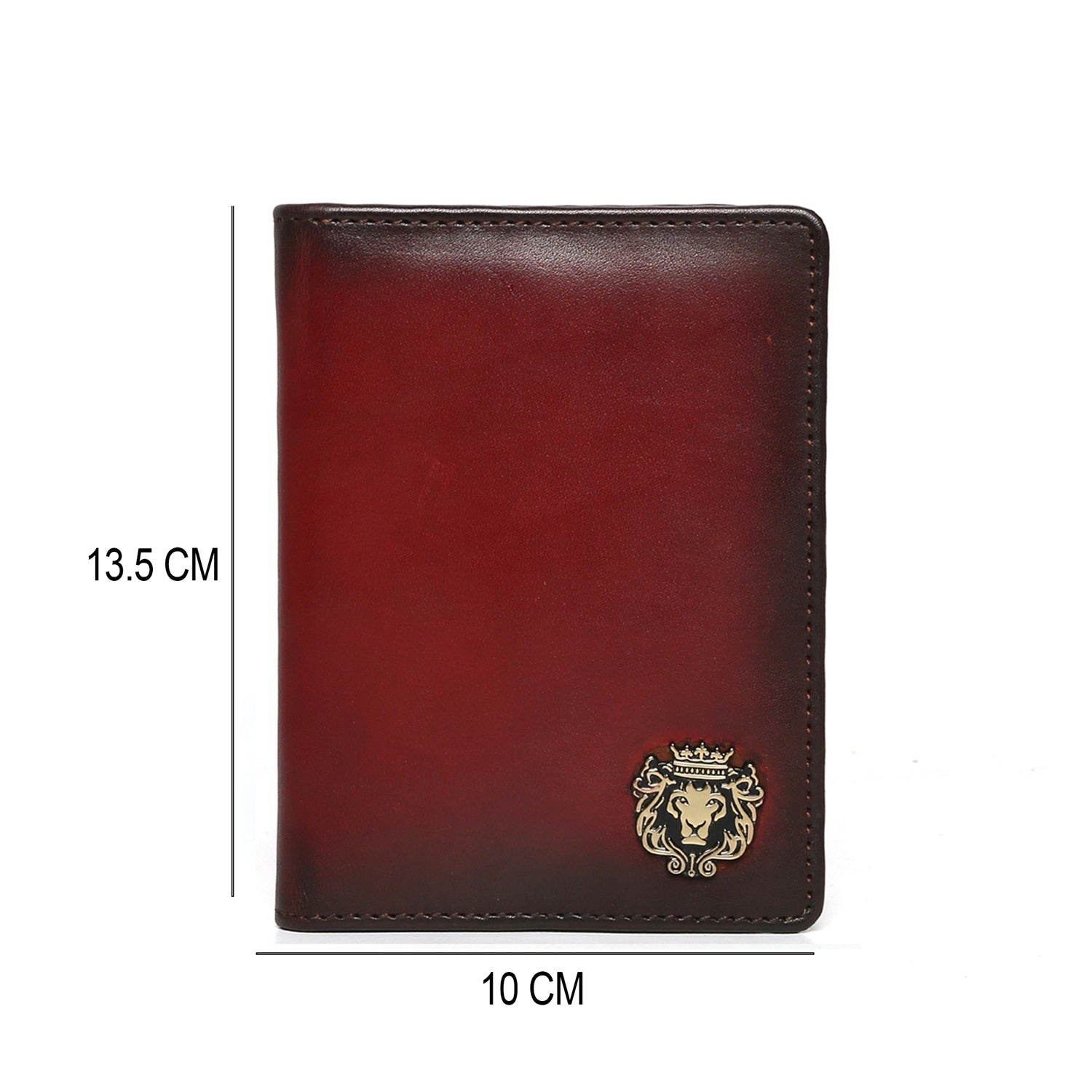 Wine Two Fold Passport Holder in Leather with card and wallet slots
