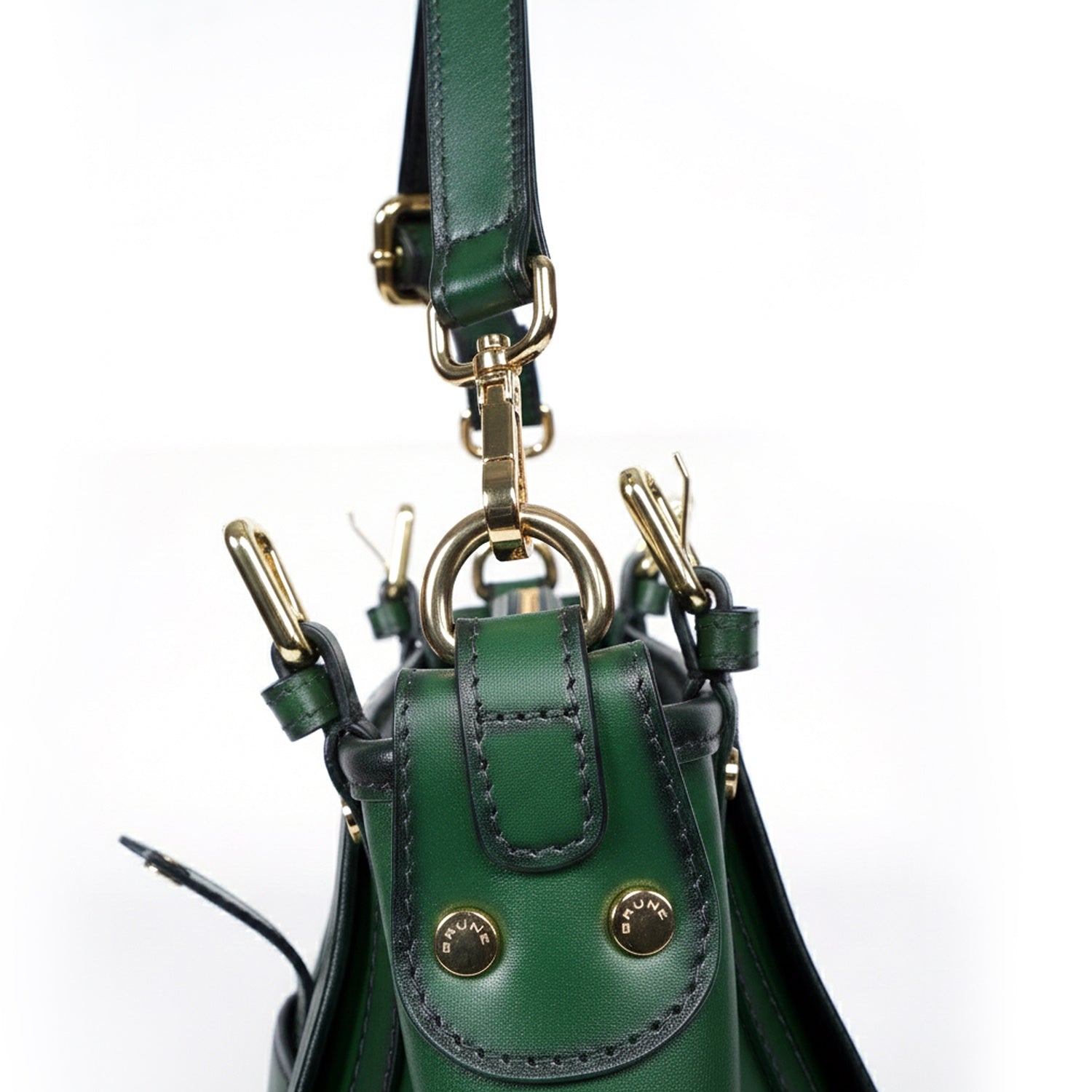 Indulge in luxury with our Women Fashion Bucket Bag in Green Leather by Brune & Bareskin. This premium quality bag boasts a stylish patina finish and ample space for all your essentials. The handy and practical design features a snap button pocket at the back and multiple zipper compartments, perfect for travel or everyday use. Plus, the detachable and adjustable shoulder strap adds convenience to this classic tote bag.