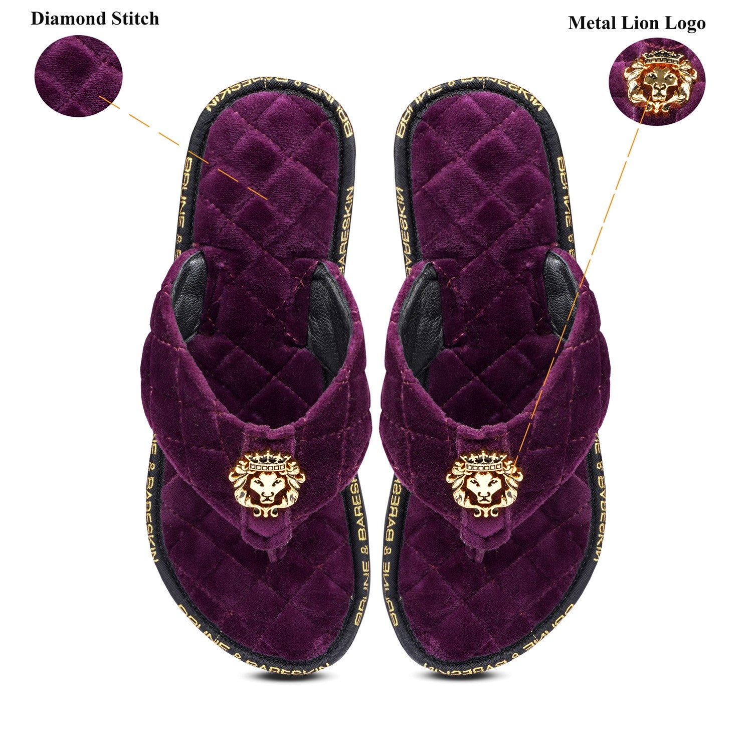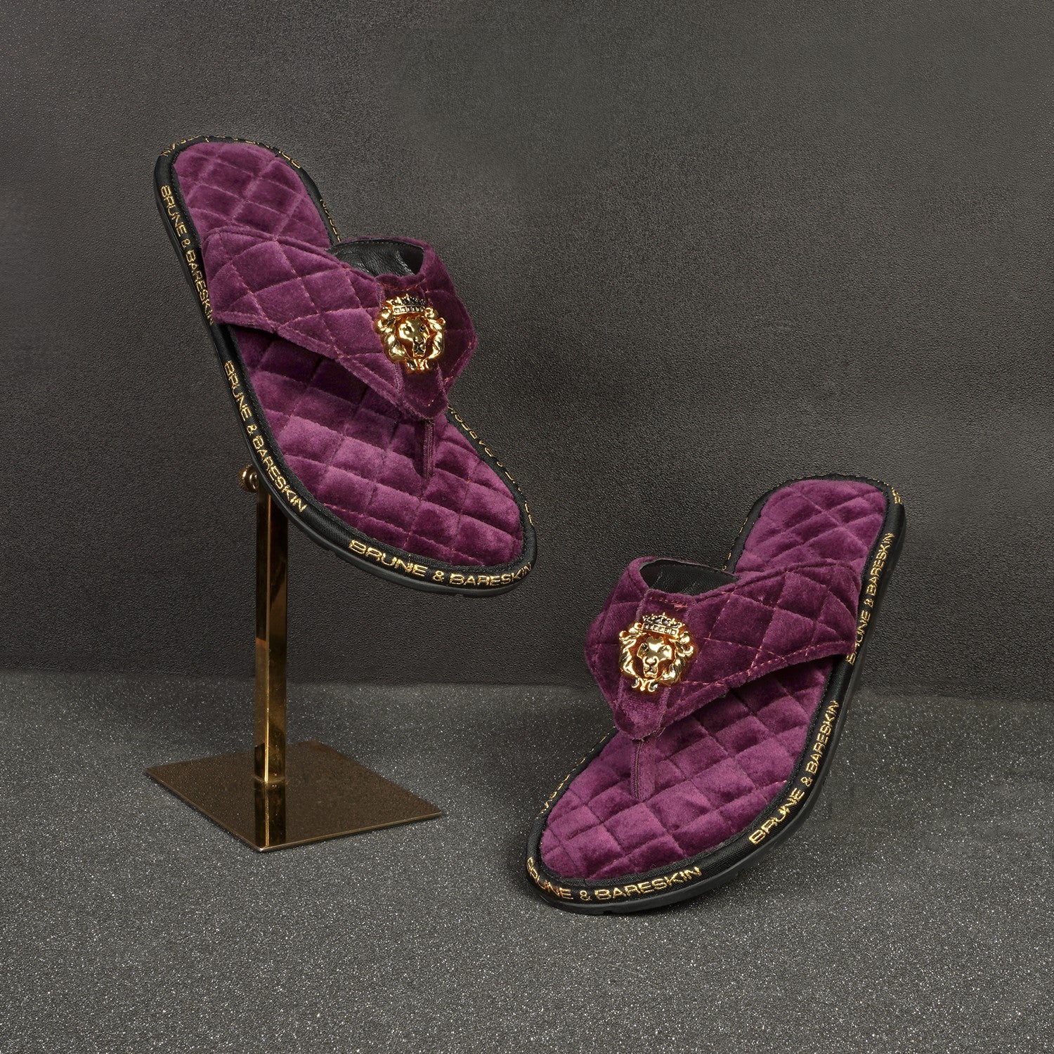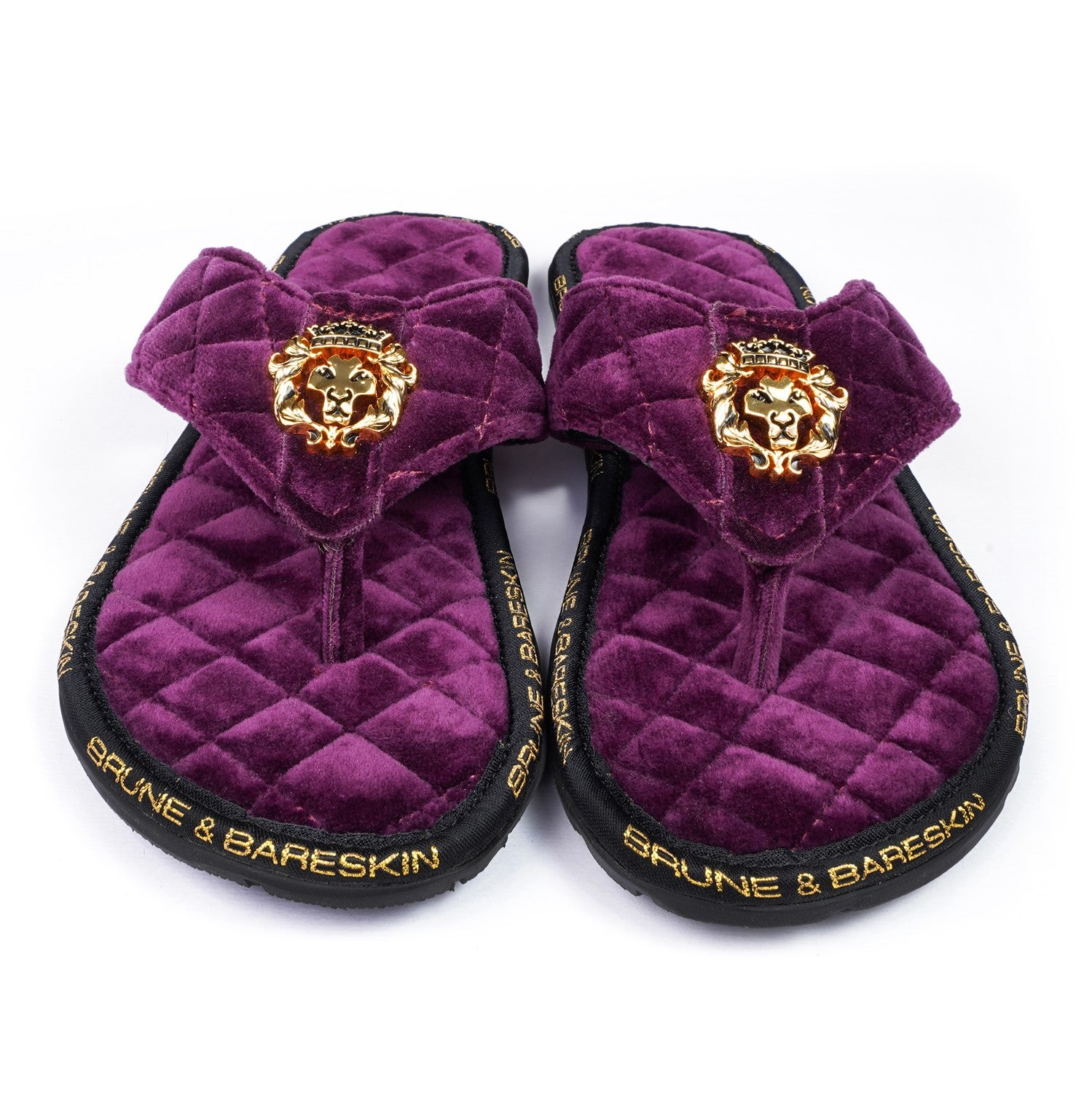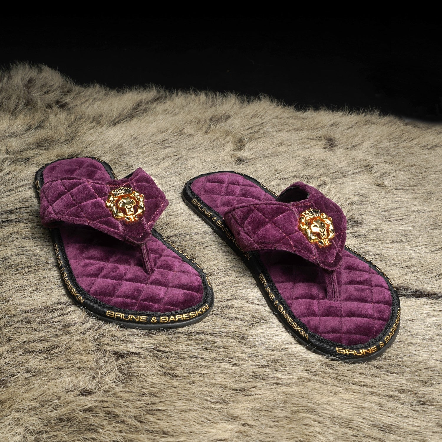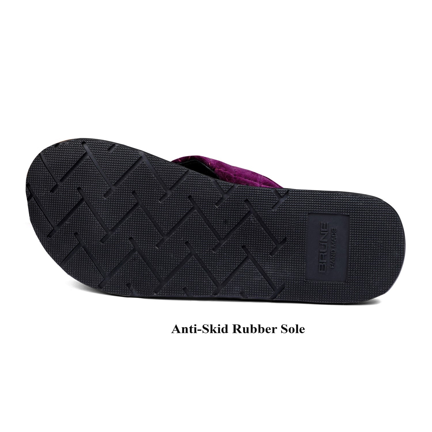 Discover the highest standards of luxury and style with Brune & Bareskin's V-Strap Slide-in Slipper. Handcrafted with premium and featuring a velvet, this women's Slide-in Slipper boasts iconic hand stitched v-strapped design. Experience comfort with extra-padded insoles and a rubberized flat sole for added durability.