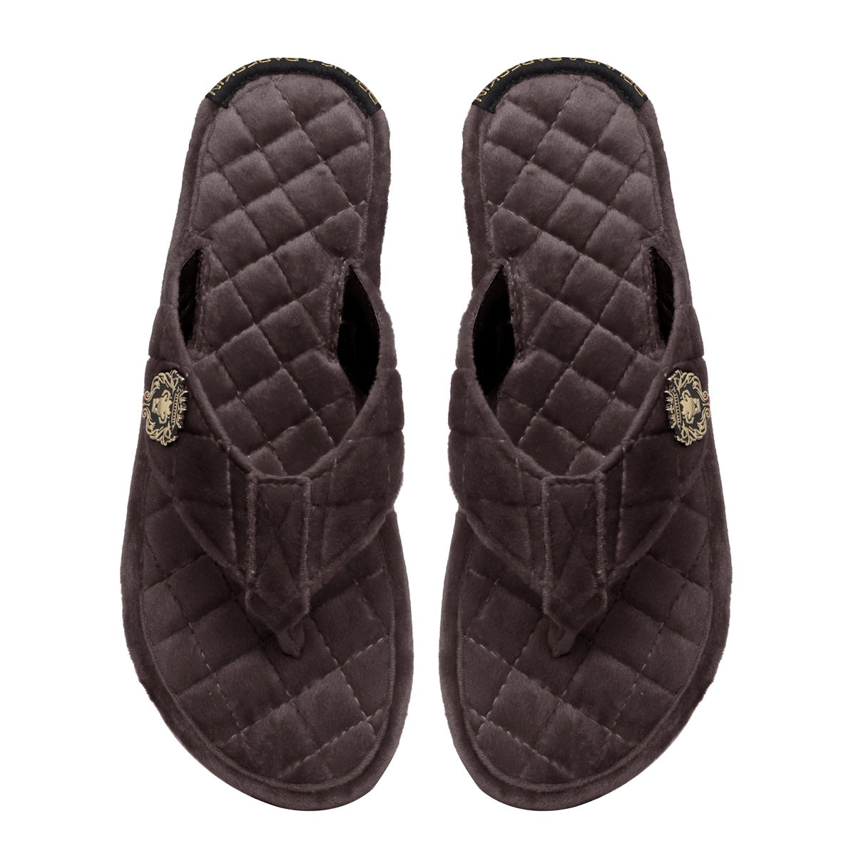 Women V-Strap Brown Full Quilted Soft Italian Velvet Slippers By Brune & Bareskin