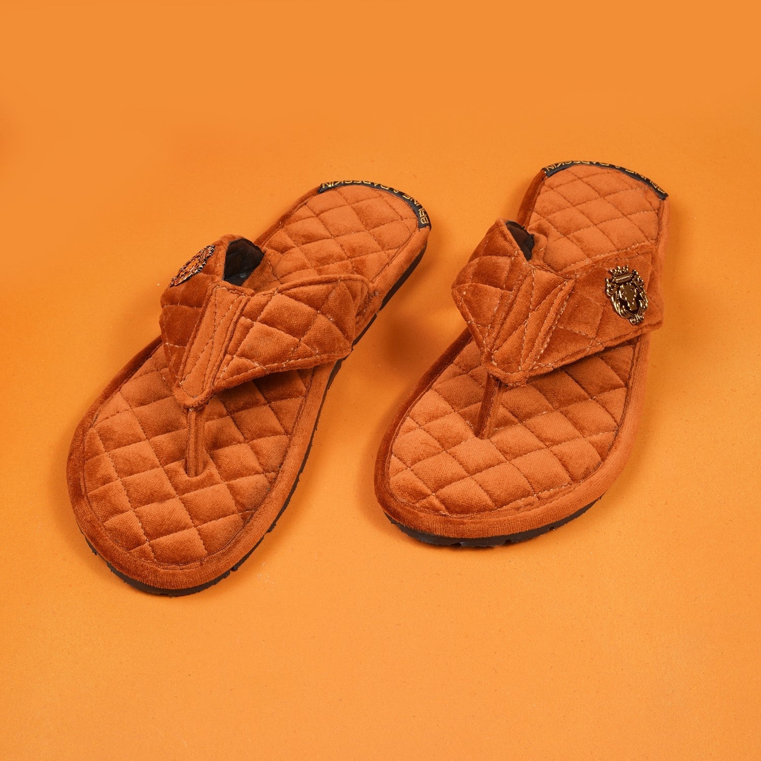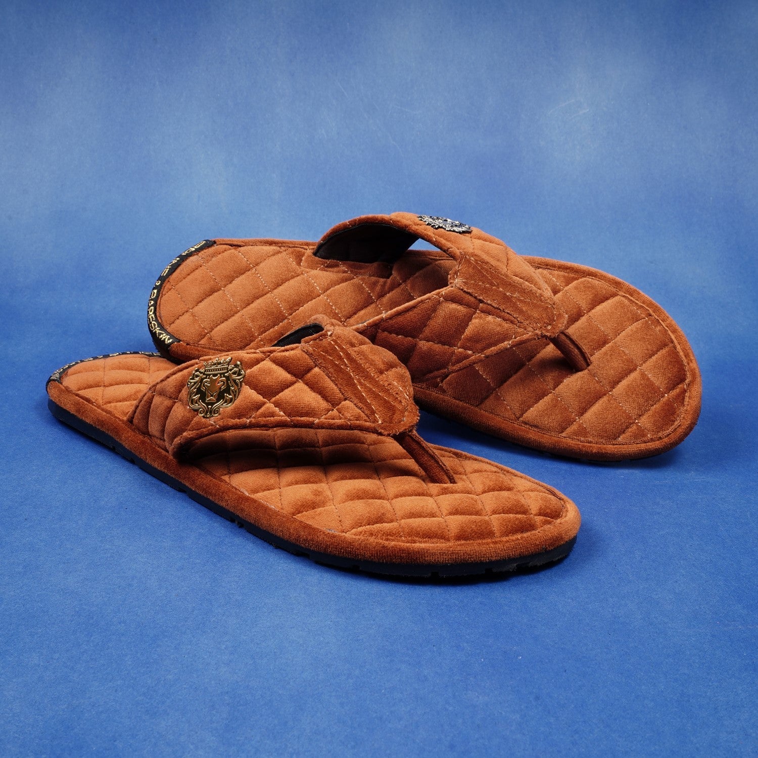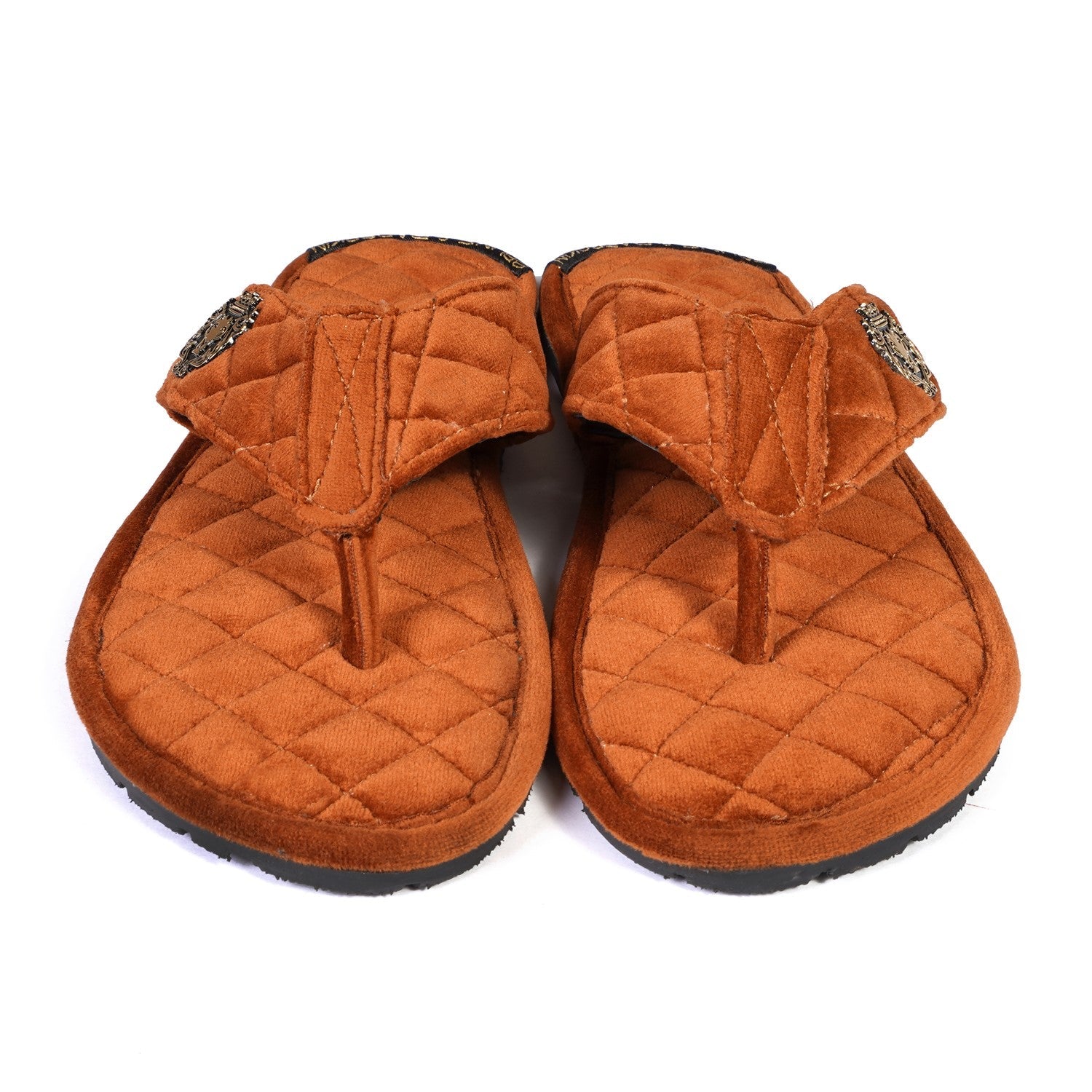 Women V-Strap Tan Full Diamond Stitched Soft Italian Velvet Slippers