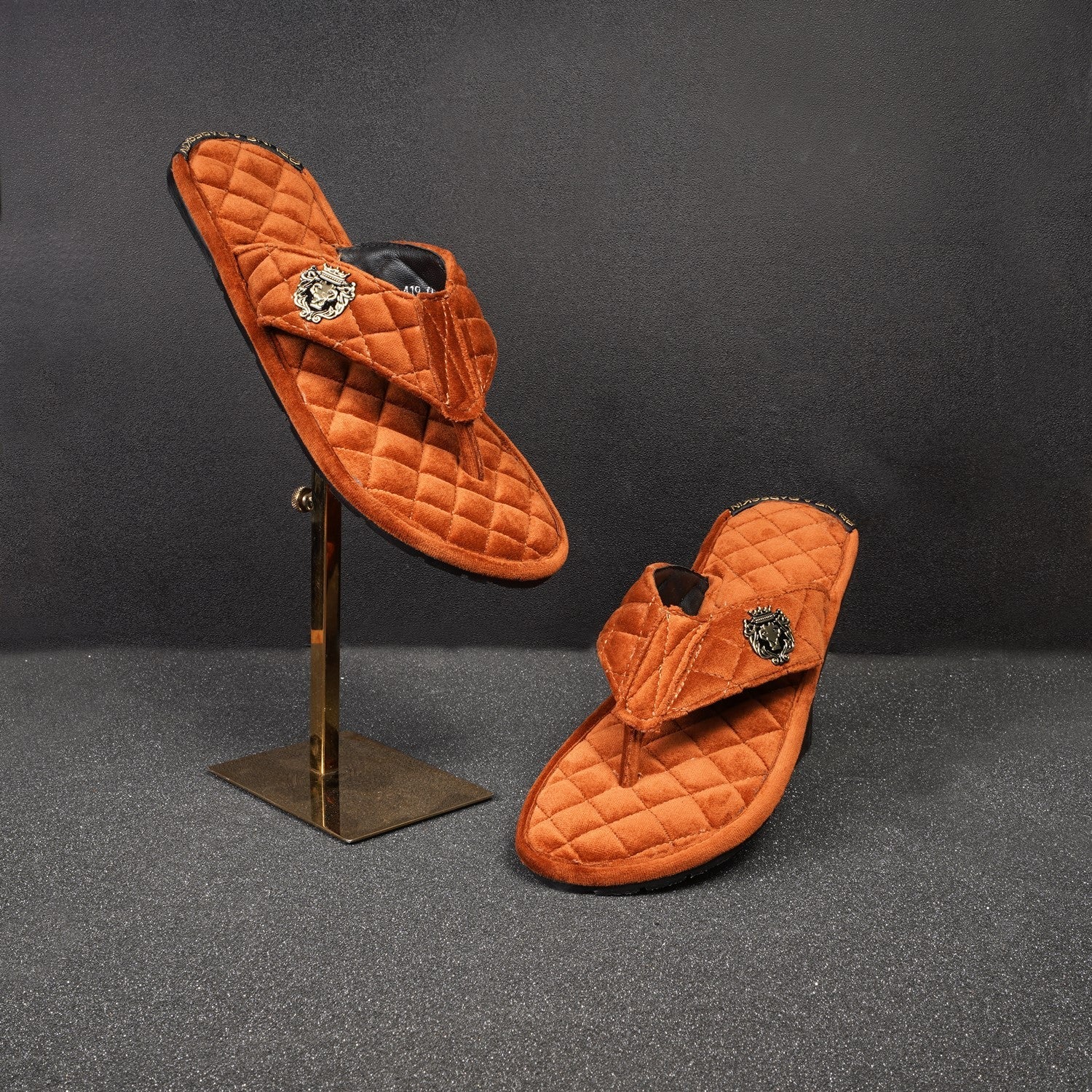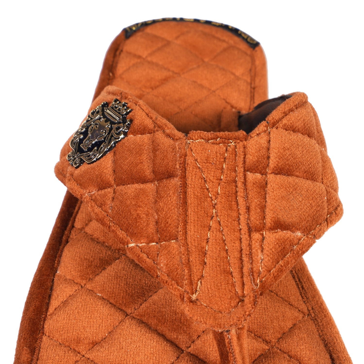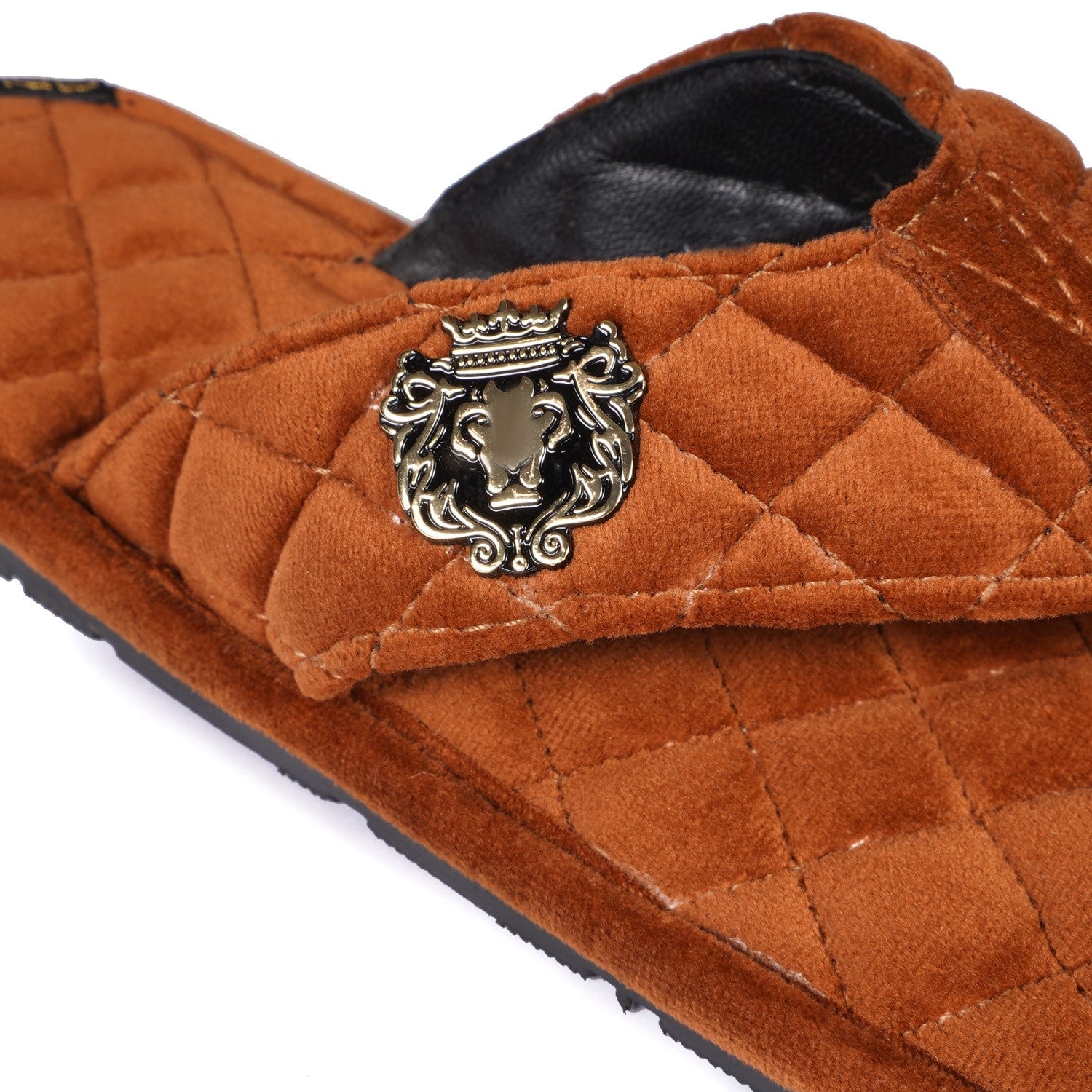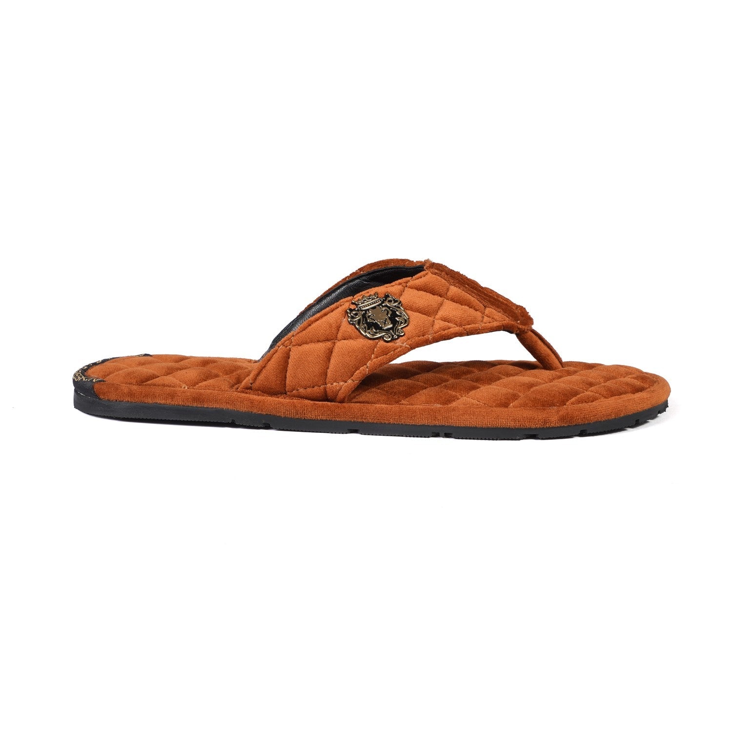 Women V-Strap Tan Full Diamond Stitched Soft Italian Velvet Slippers