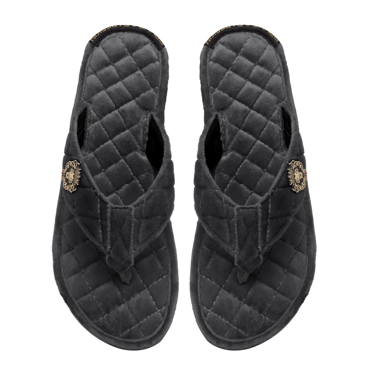 Women V-Strap Grey Full Quilted Soft Italian Velvet Slippers By Brune & Bareskin