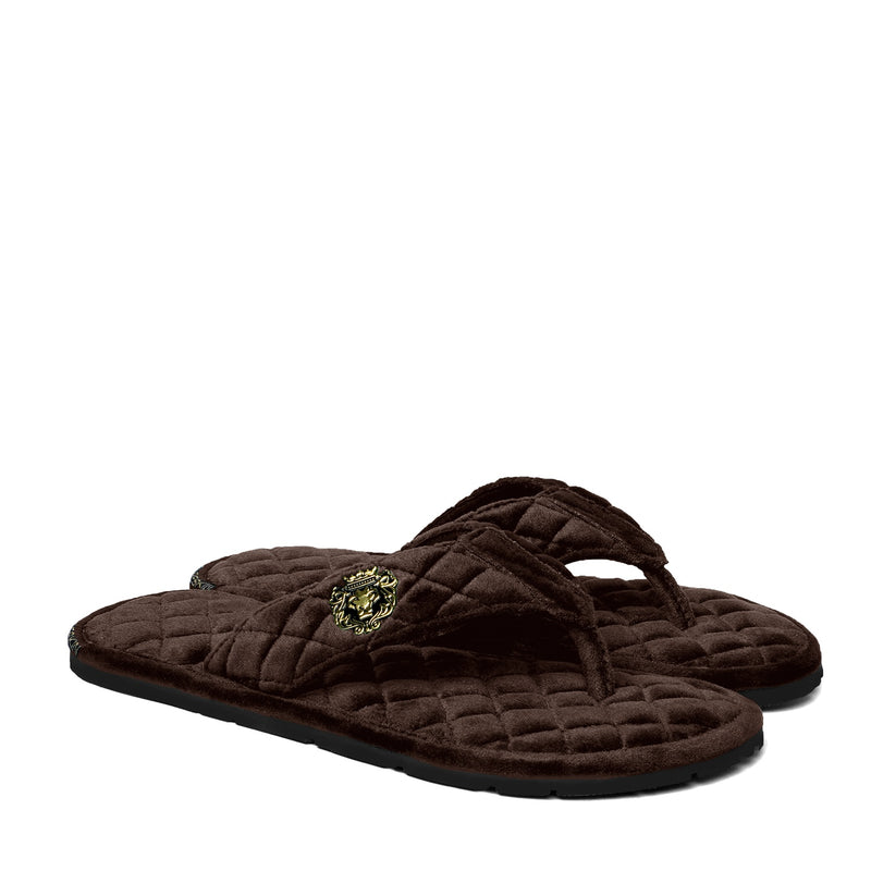 This comfy and super soft women's slippers are made using durable Italian Velvet. The slipper has a three point thong construction with quilted diamond stitched pattern on base and strap with extra cushioning. The wide strap provides a more secure and comfortable fit. It has the memory foam in the base which helps to retain it's quilted design. This dual shade effect velvet slipper looks fab when wears with Jeans, Shorts, Capris and other casual wears. The Brune & Bareskin Signature Lion logo on quilted strap enhances the elegance further. Anti-Skid Rubber outer sole ensures the perfect walking grip.