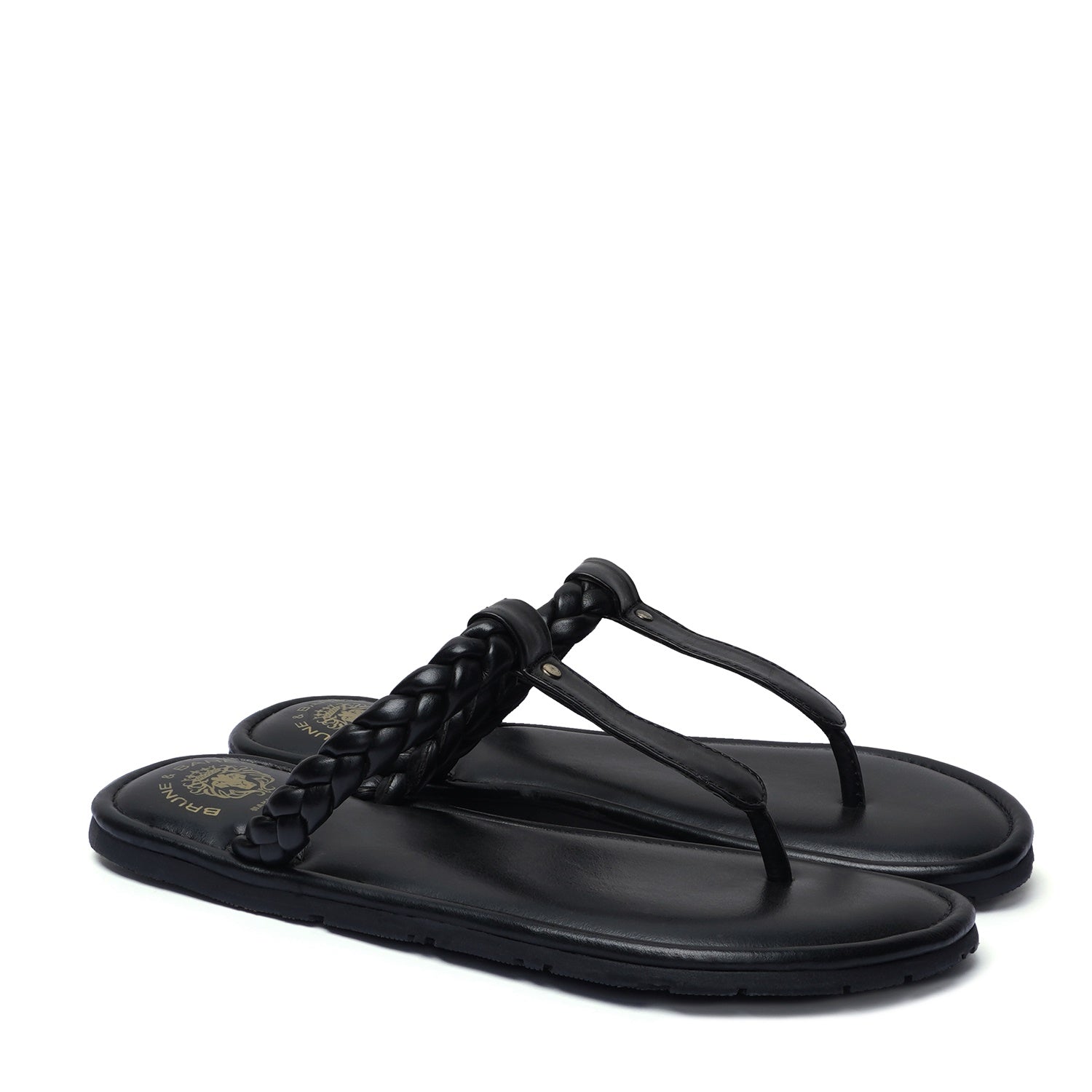 Women's Black Knotted T-Strap Slippers By Brune & Bareskin