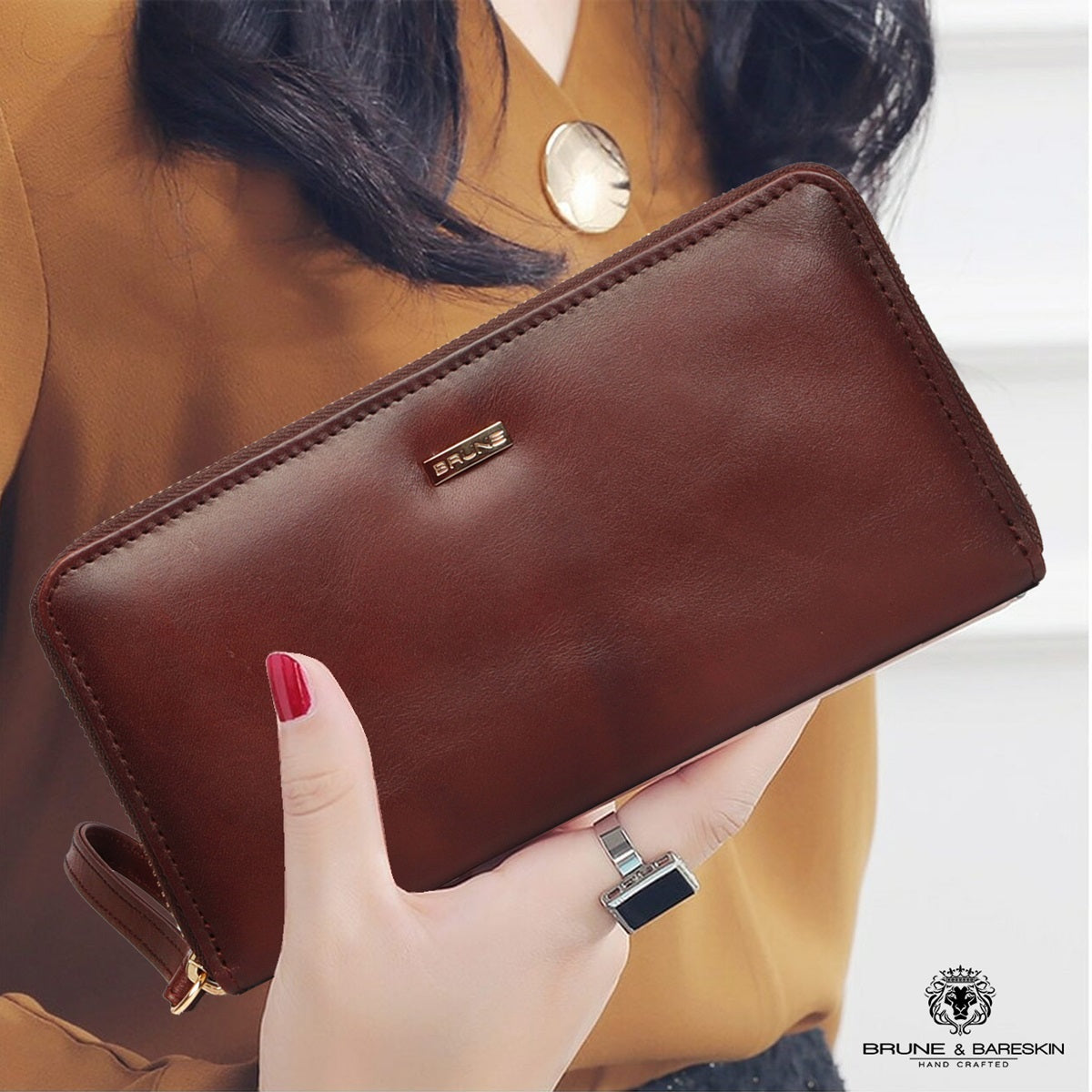 Wallets plays an important role in women's life at any age. This is one of the most versatile wallet from BRUNE & BARESKIN. This ladies wallet is made up of International Soft Leather and it has 20+ different size pockets. It's Dark Brown color would be a perfect match for all your dresses. The plain sleek design provides the elegance to it. Large note pockets and dedicated card pockets make it a multi-utility accessories for women.