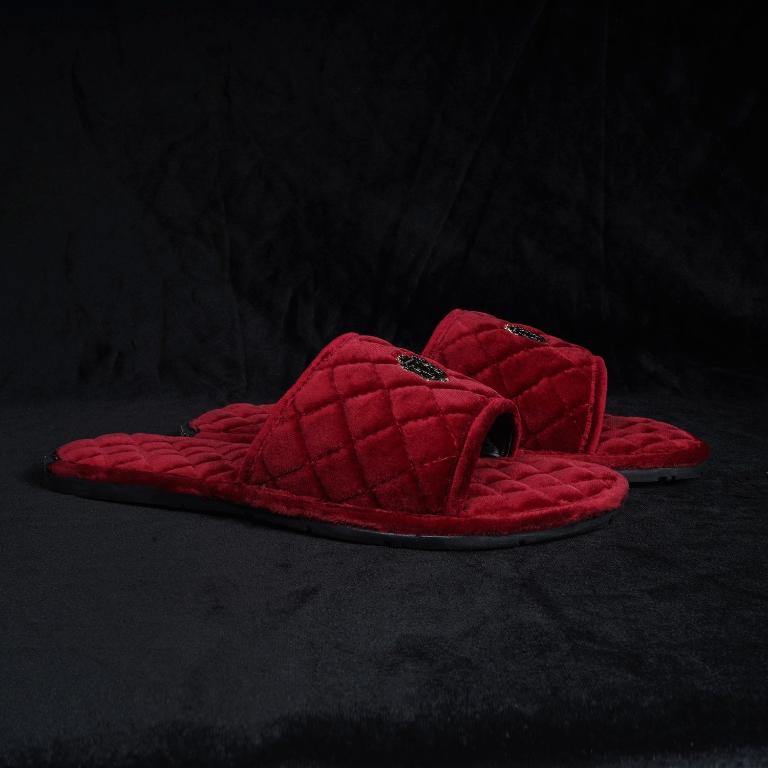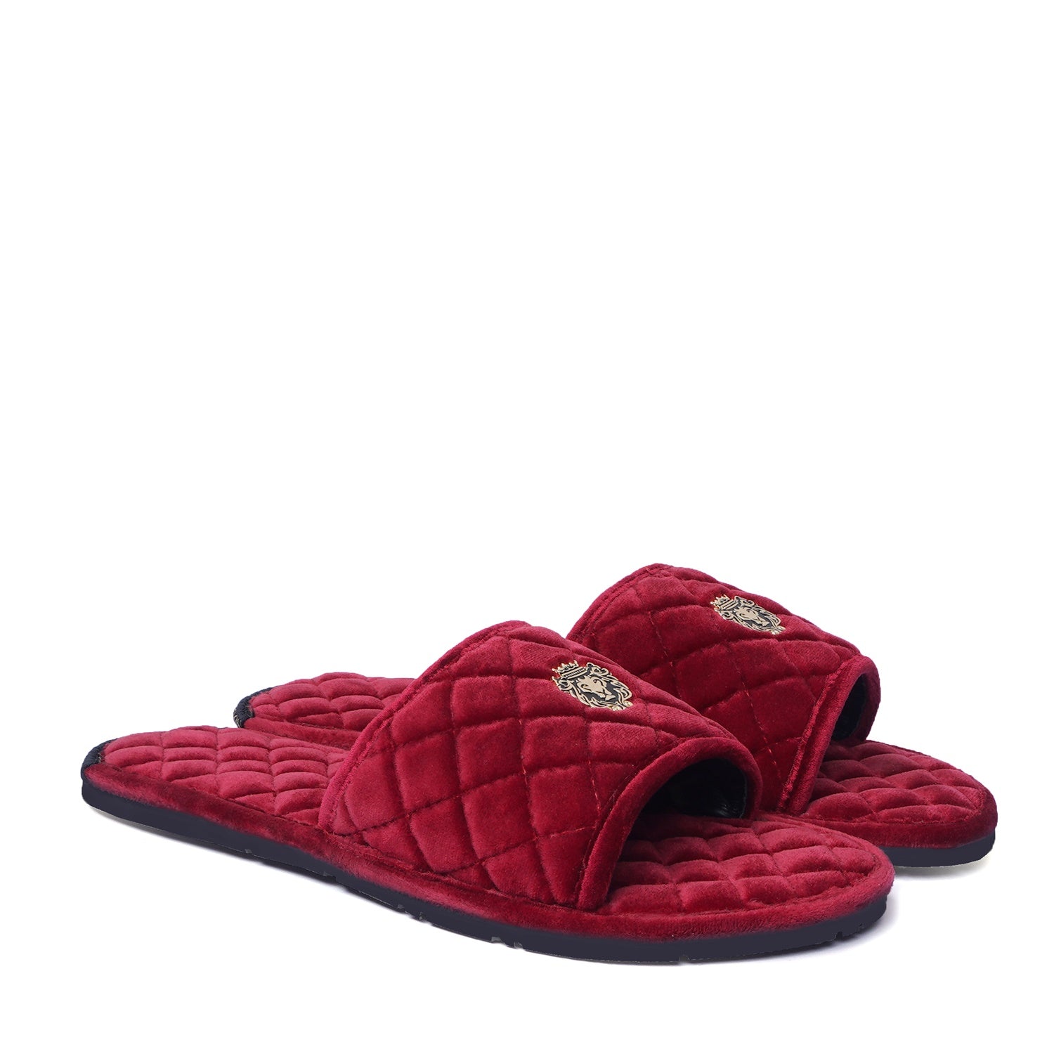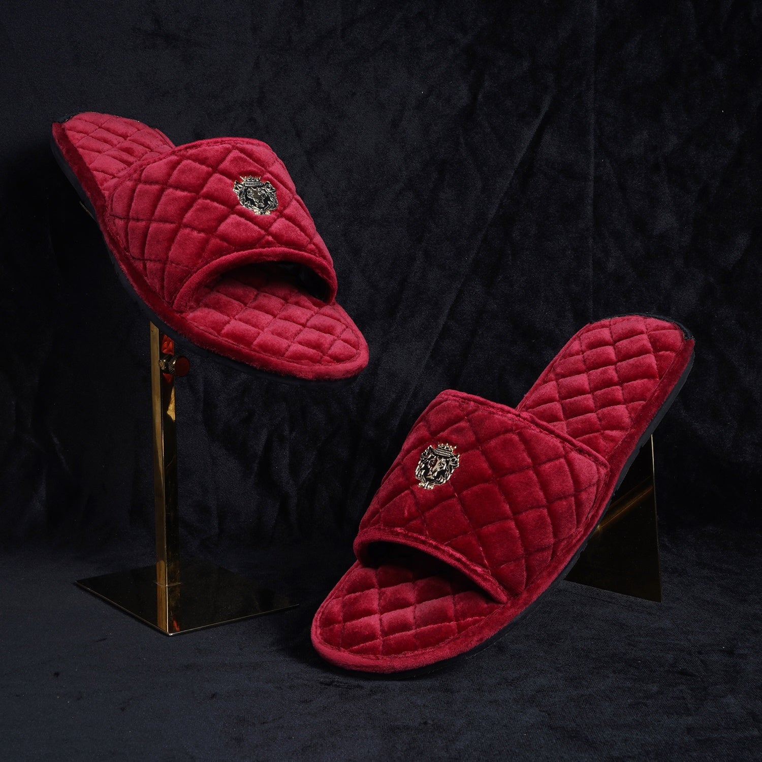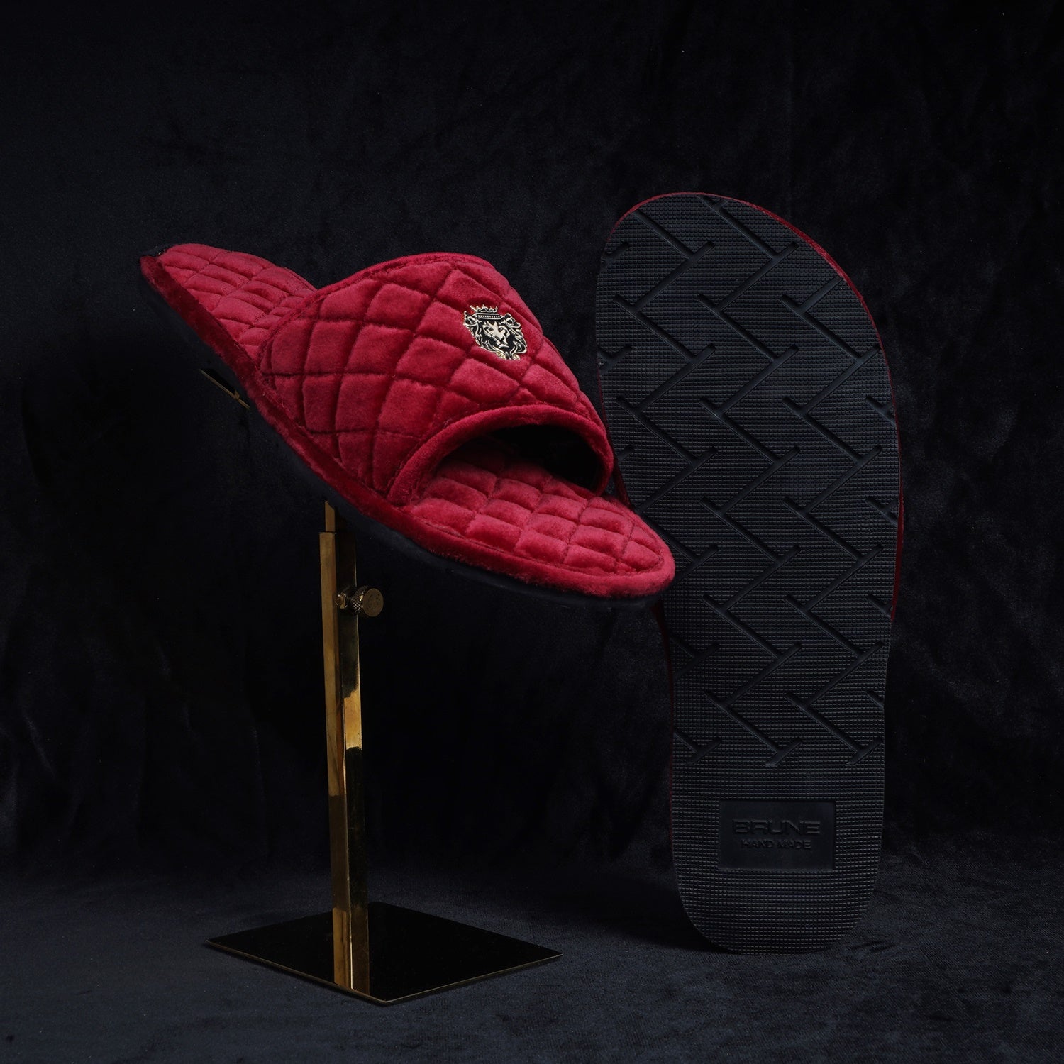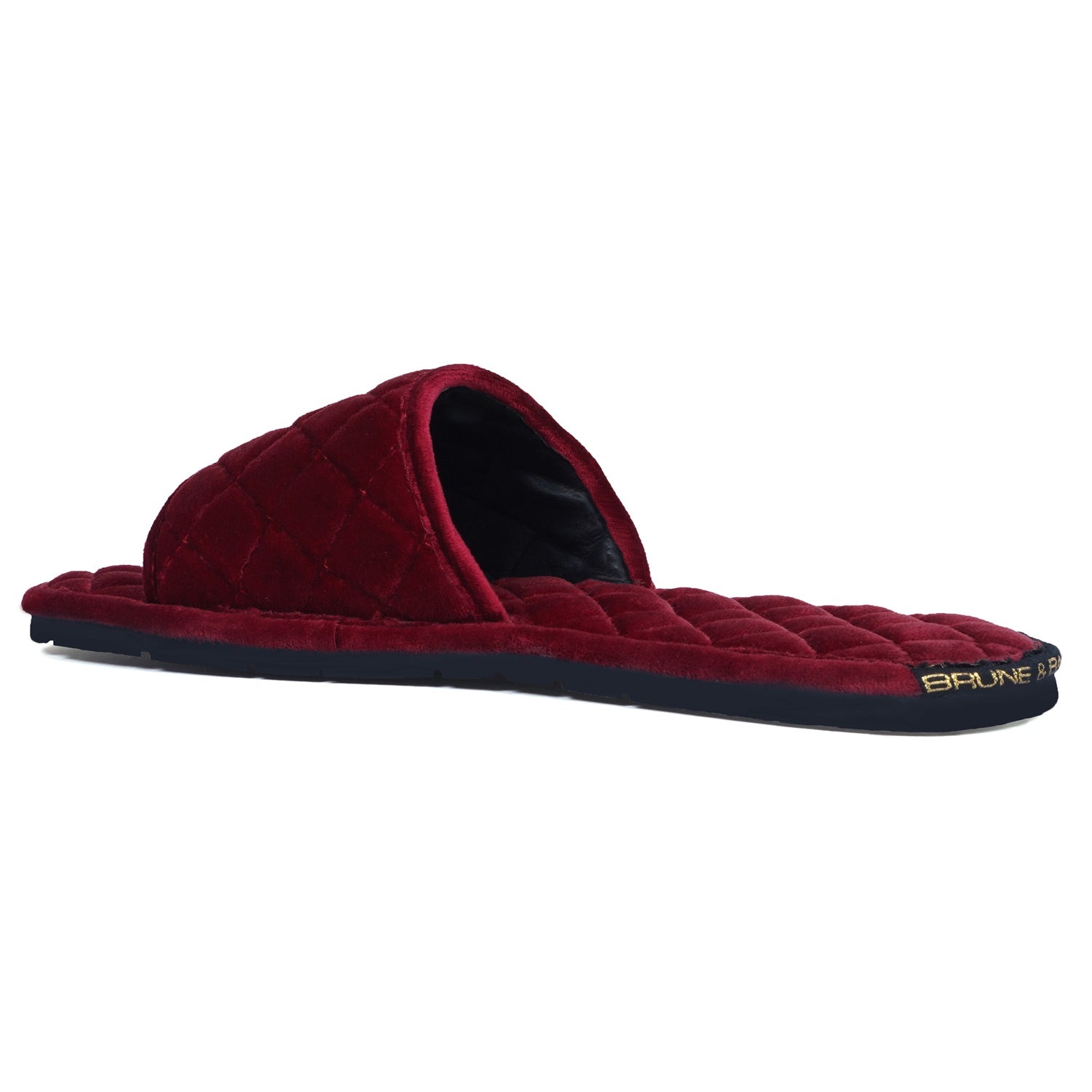 Women's Red Full Quilted Stitched Super Soft Italian Velvet Slide-in Slippers By Brune & Bareskin