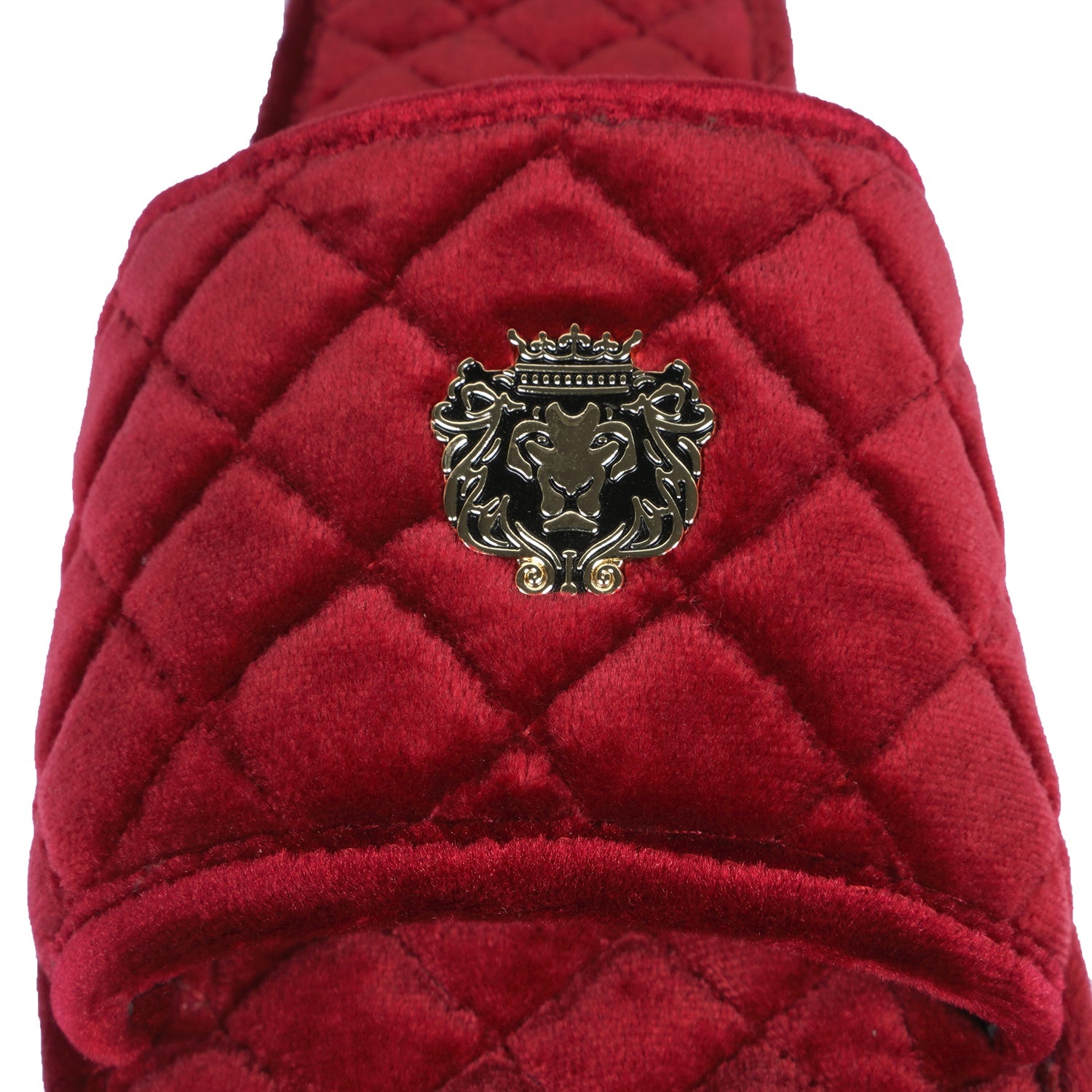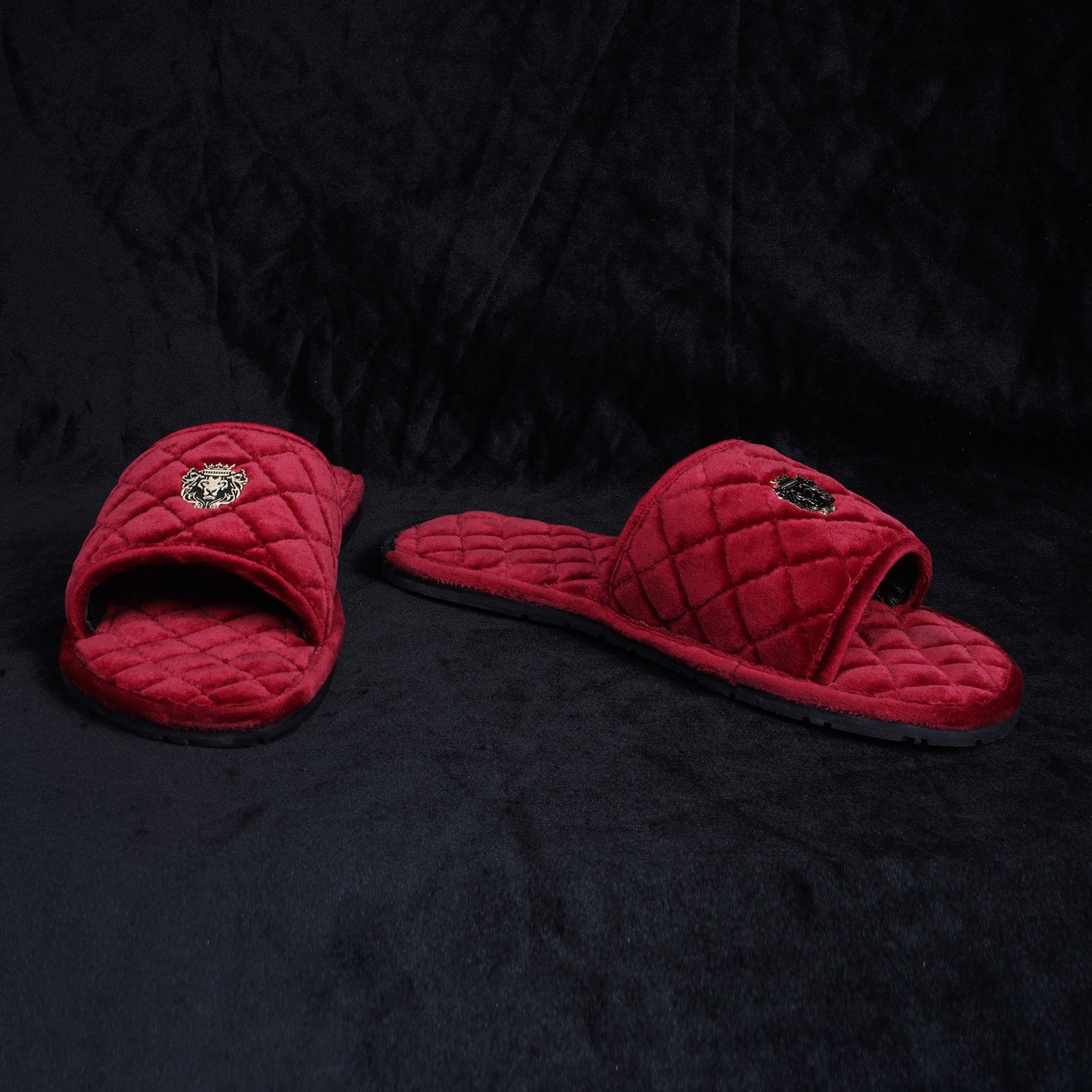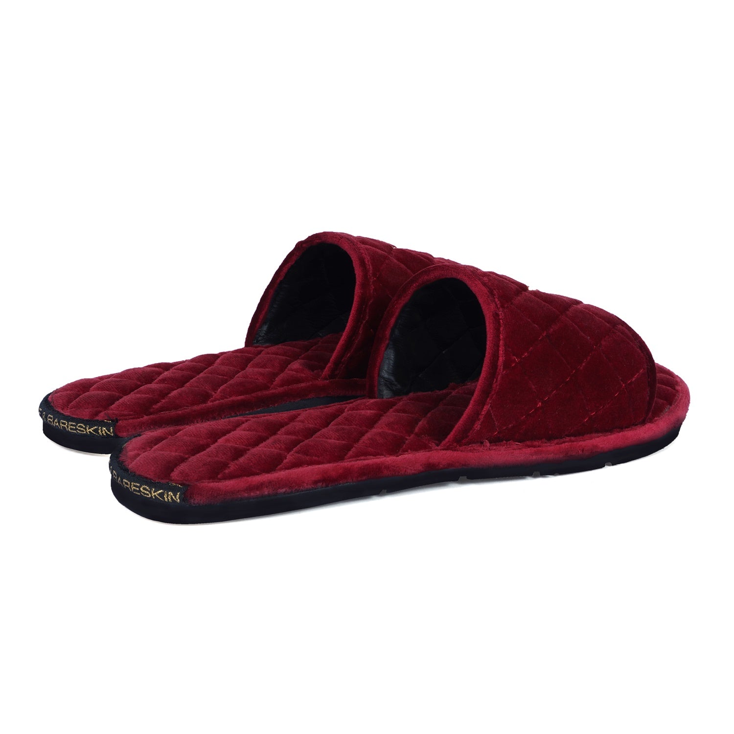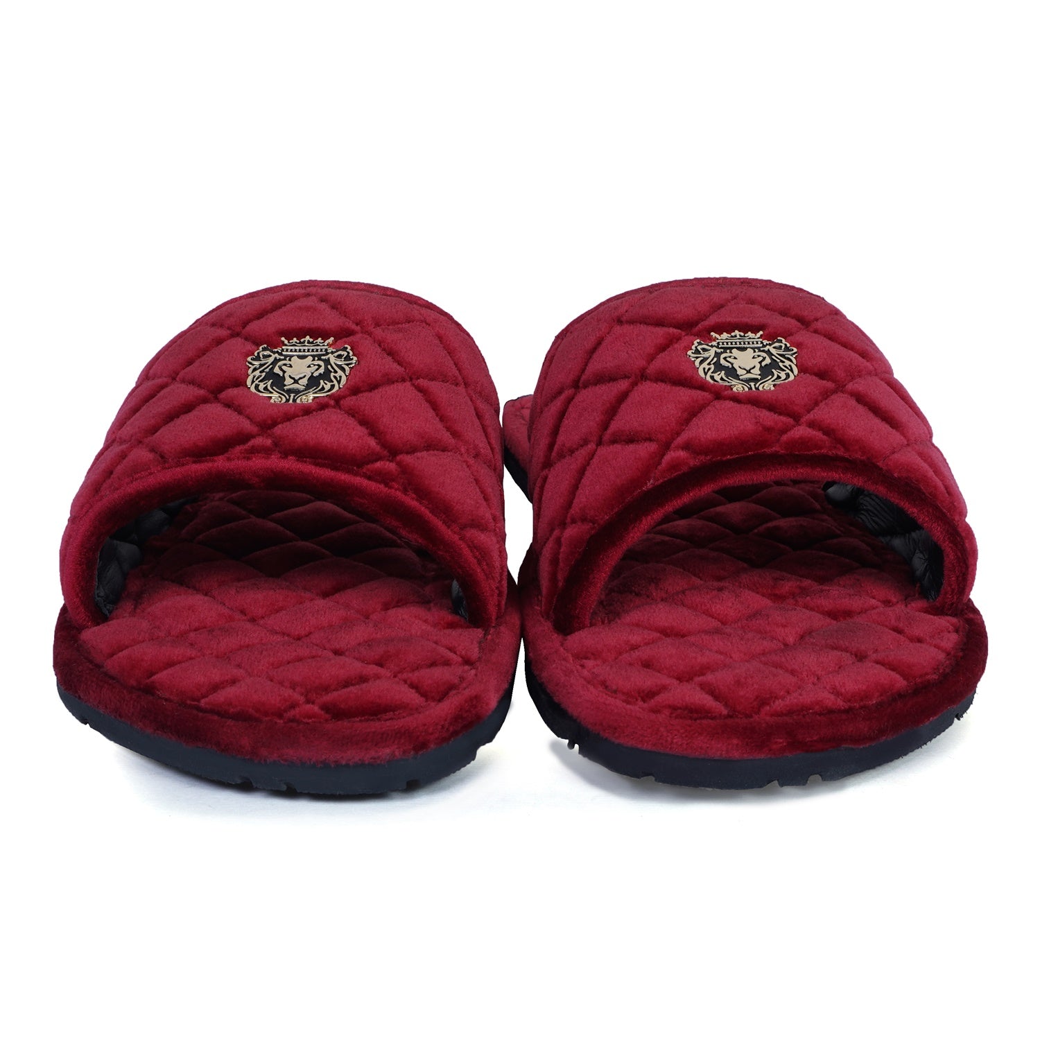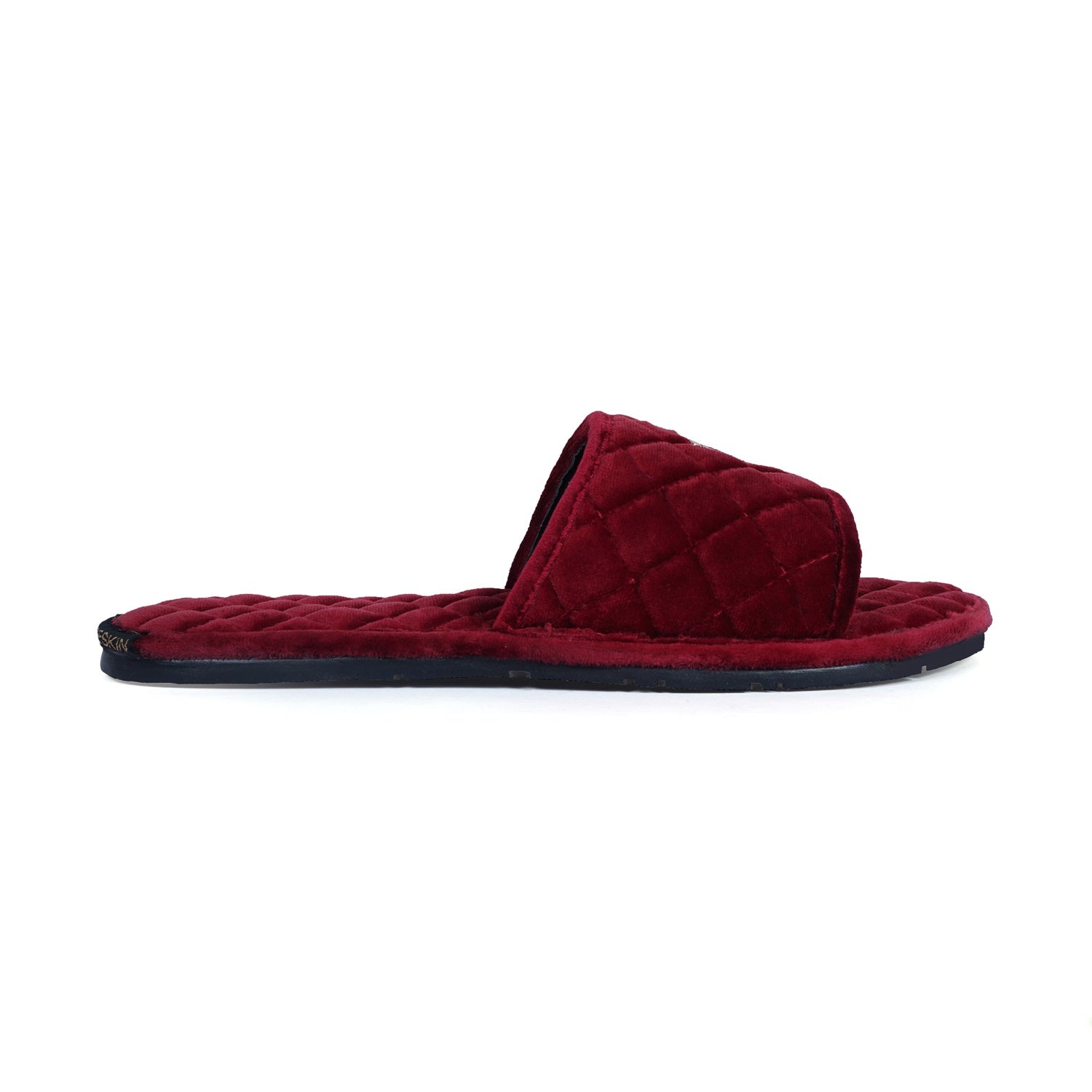 Women's Red Full Quilted Stitched Super Soft Italian Velvet Slide-in Slippers By Brune & Bareskin
