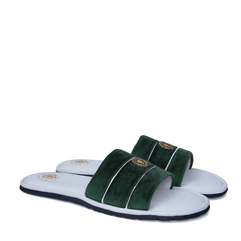 Women's Red Velvet Strap White Leather Slide-in Slippers by BRUNE & BARESKIN