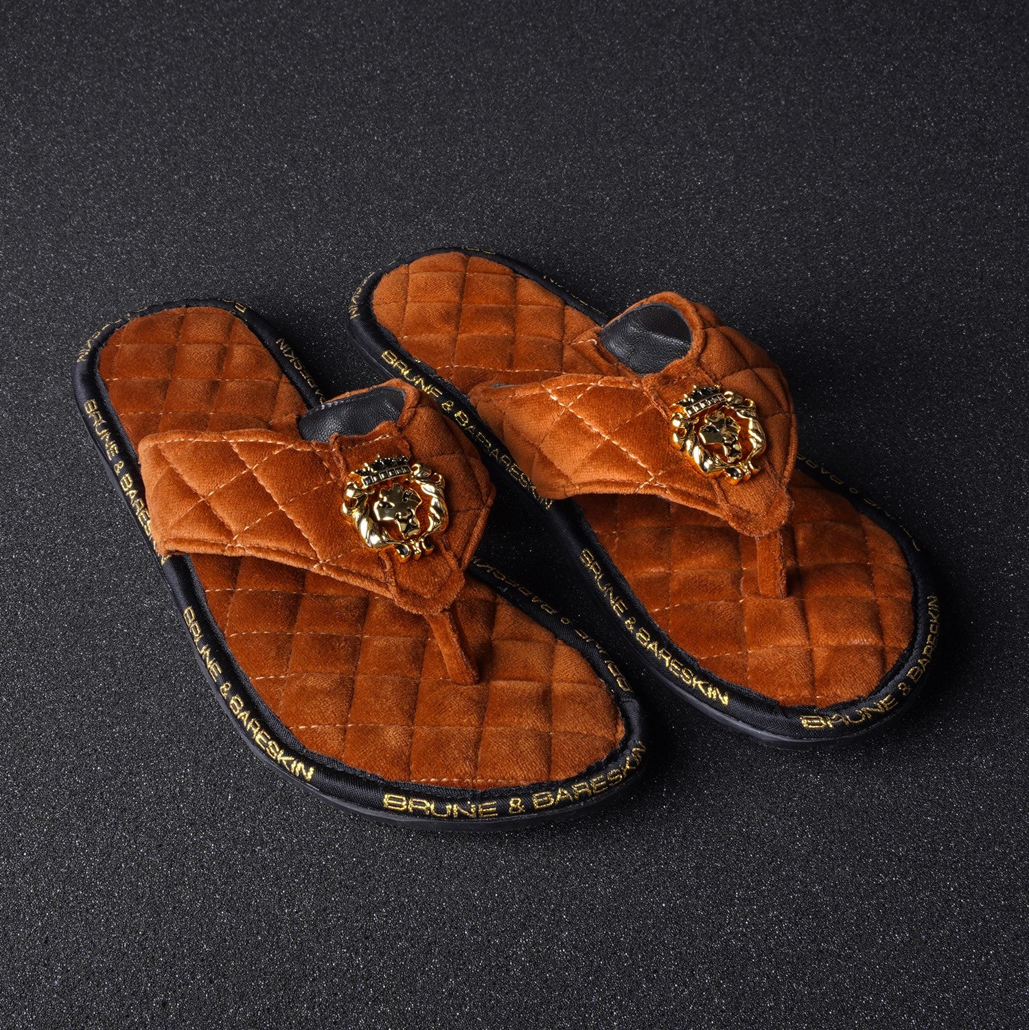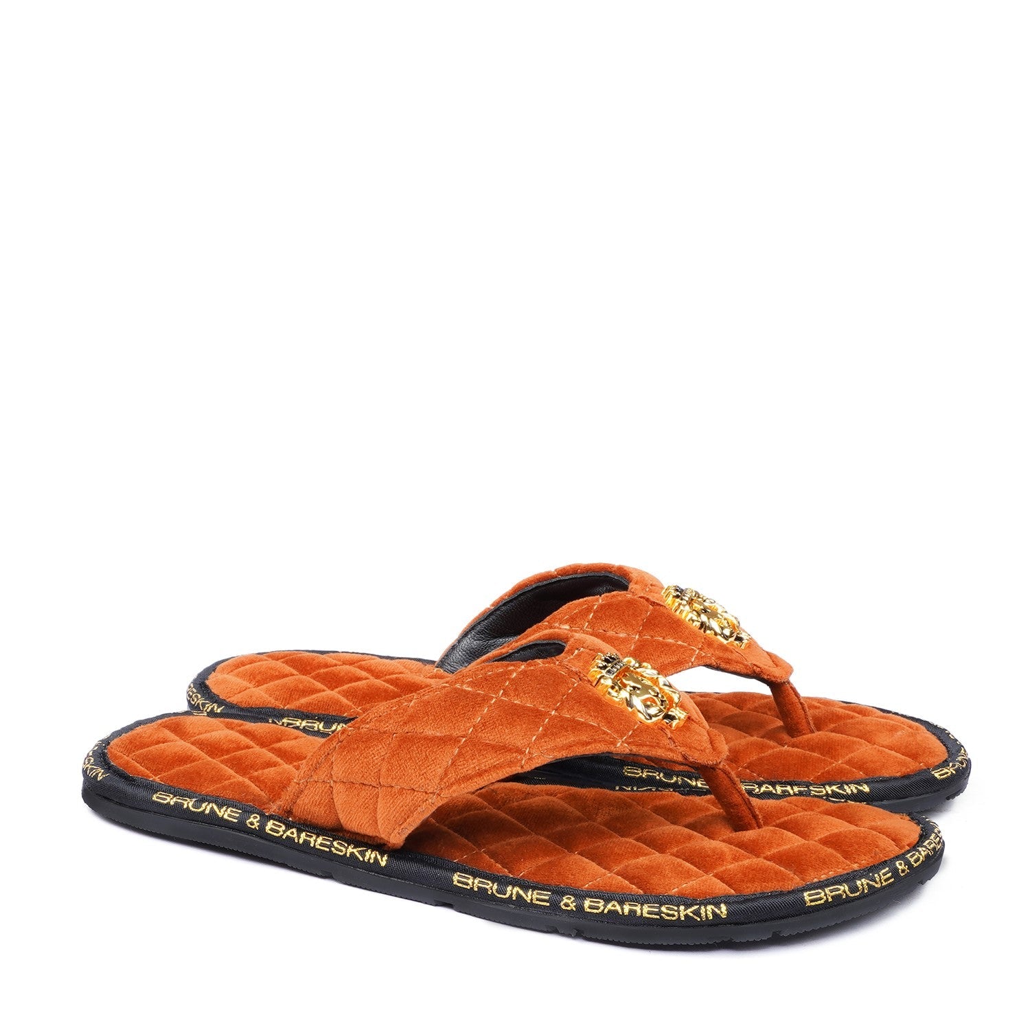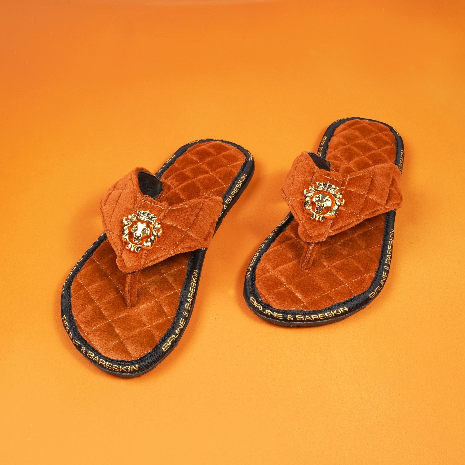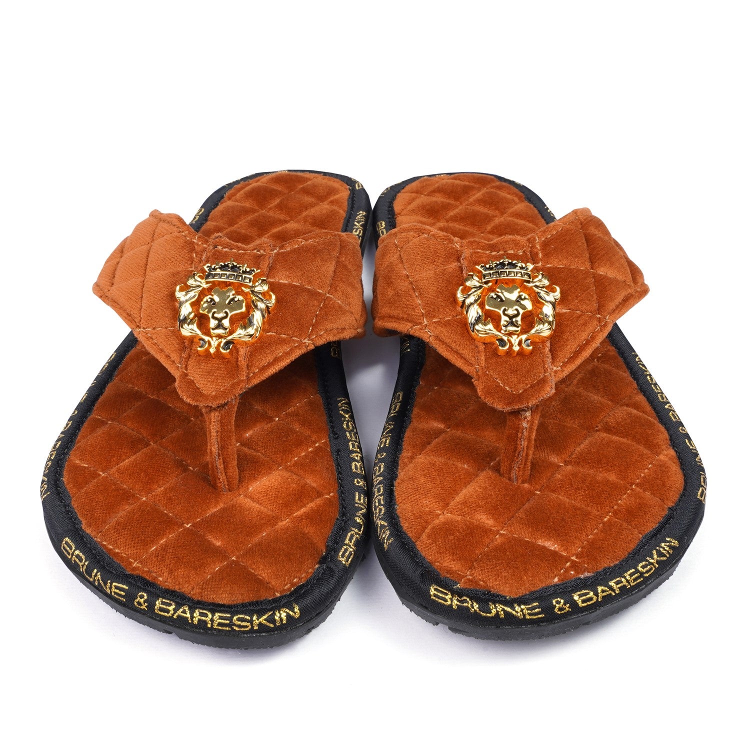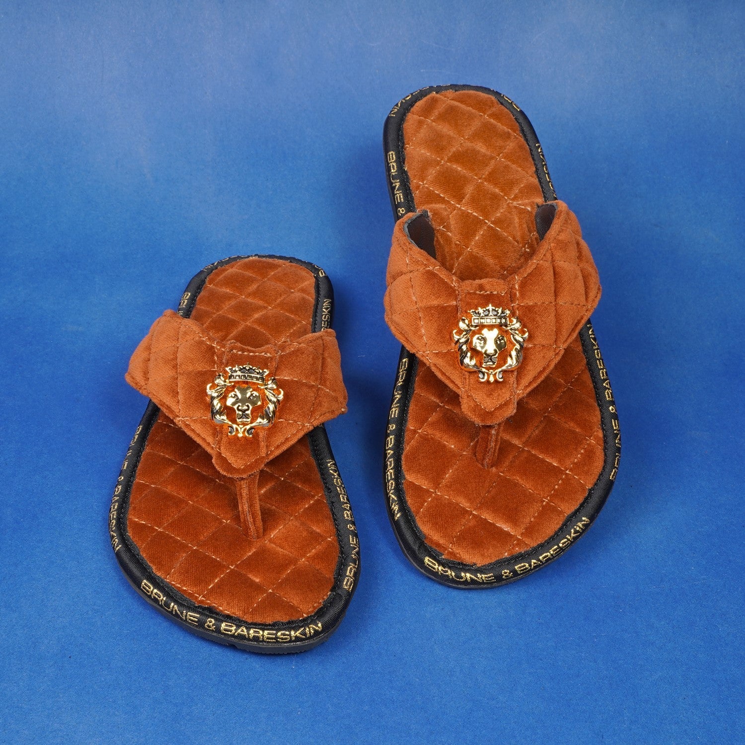 Super Comfy 3D Lion logo slippers, these super soft velvet base slippers are must have of the season. The gel injected memory foam base is designed to provide you comfort while walking. We use special layering techniques to keep the base cozy and retain it's shape. The wider straps with BRUNE & BARESKIN Lion Logo enhances the elegance further. Carry these with Jeans, Shorts, Capris and other casual wears to be style leader. Anti-Skid Rubber outer sole ensures the perfect walking grip.