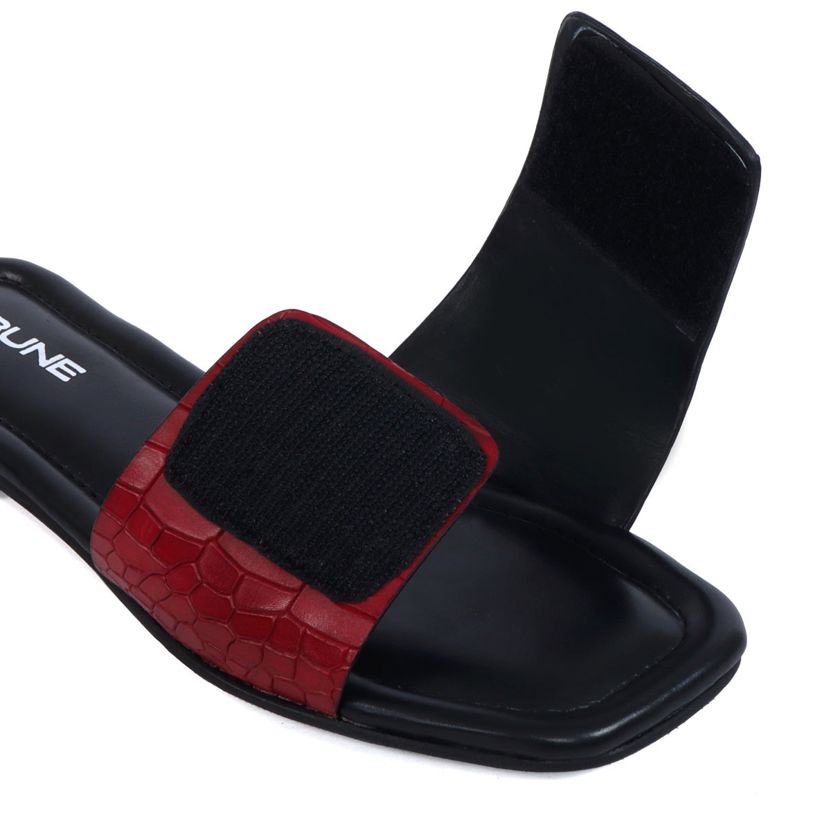 Women's Velcro Adjustable Strap Slide In Slipper Wine Croco Deep Cut Textured Leather