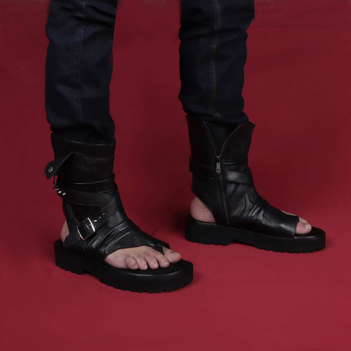 Brune & Bareskin men gladiator sandal is refers to a specific style of sandal that is inspired by ancient roman gladiator footwear. Gladiator sandals typically feature straps that wrap around the foot and/or ankle, and may have a more rugged or utilitarian look compared to other types of sandals. It can provide a more secure and customized fit compared to other types of closures, such as sliver adjustable buckles or sliver zip with mini lion logo. Black 100% genuine leather describes the material that the sandal is made from. Leather is a durable and breathable material that can provide both style and function. Chunky heel likely refers to the sole of the sandal, This can provide more cushioning and support for the foot. This suggests that the sandal is designed to be lightweight and easy to wear, which can be especially important for footwear that is worn during the warmer months. This can provide more support and protection for the foot and ankle. From a fashion perspective, studs on a sandal can add a punk or edgy element to an outfit.