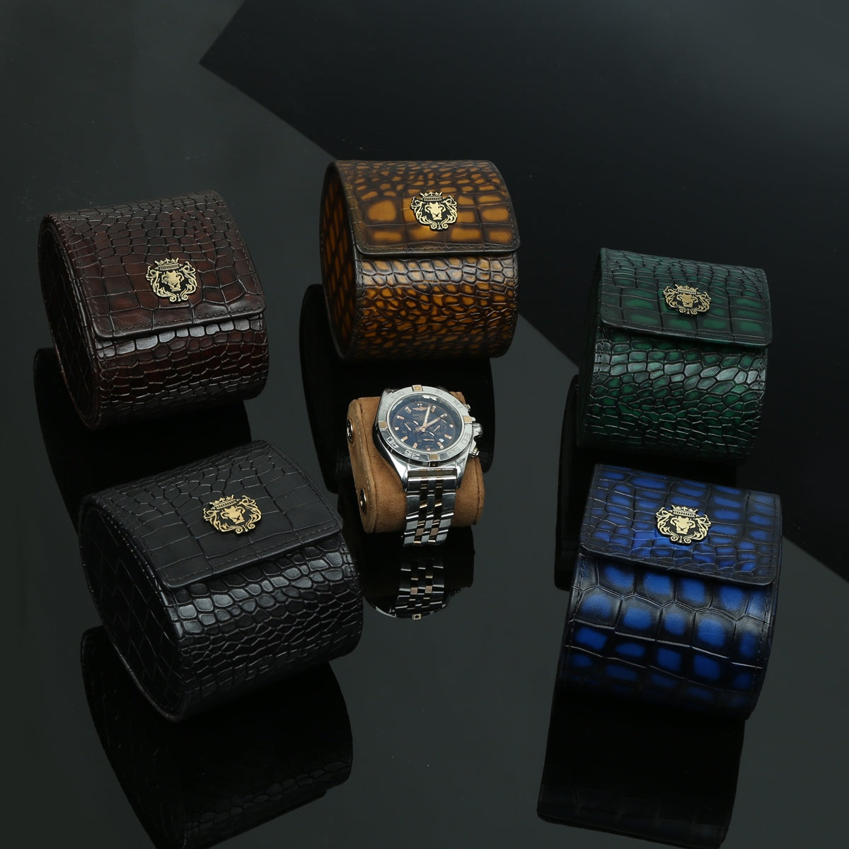 Wrist Watch Roll In Black Deep Cut Leather by Brune & Bareskin