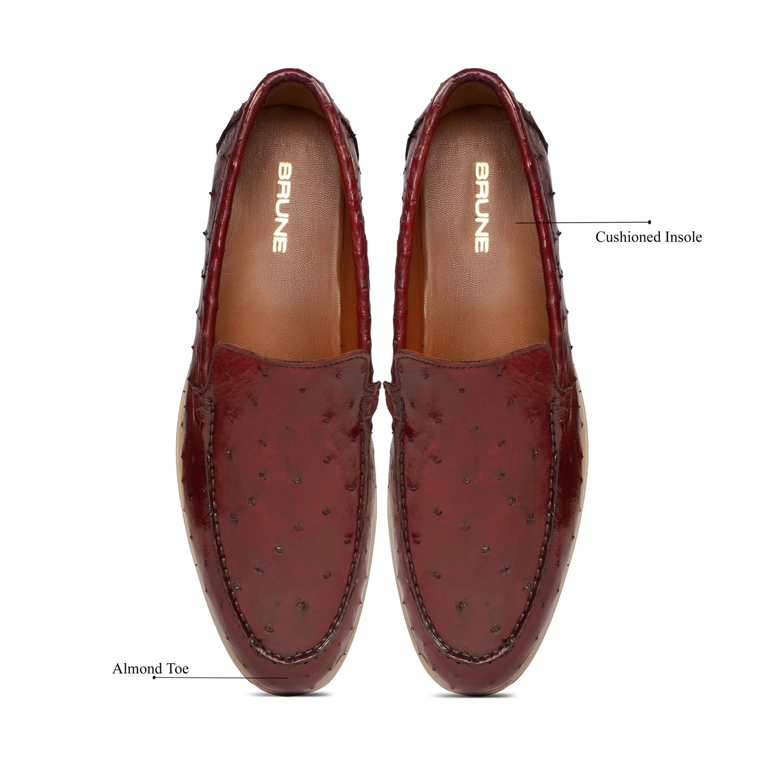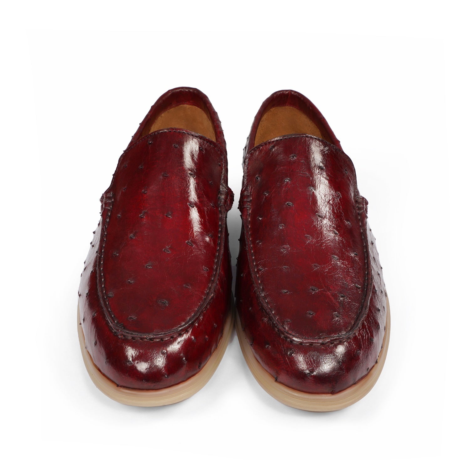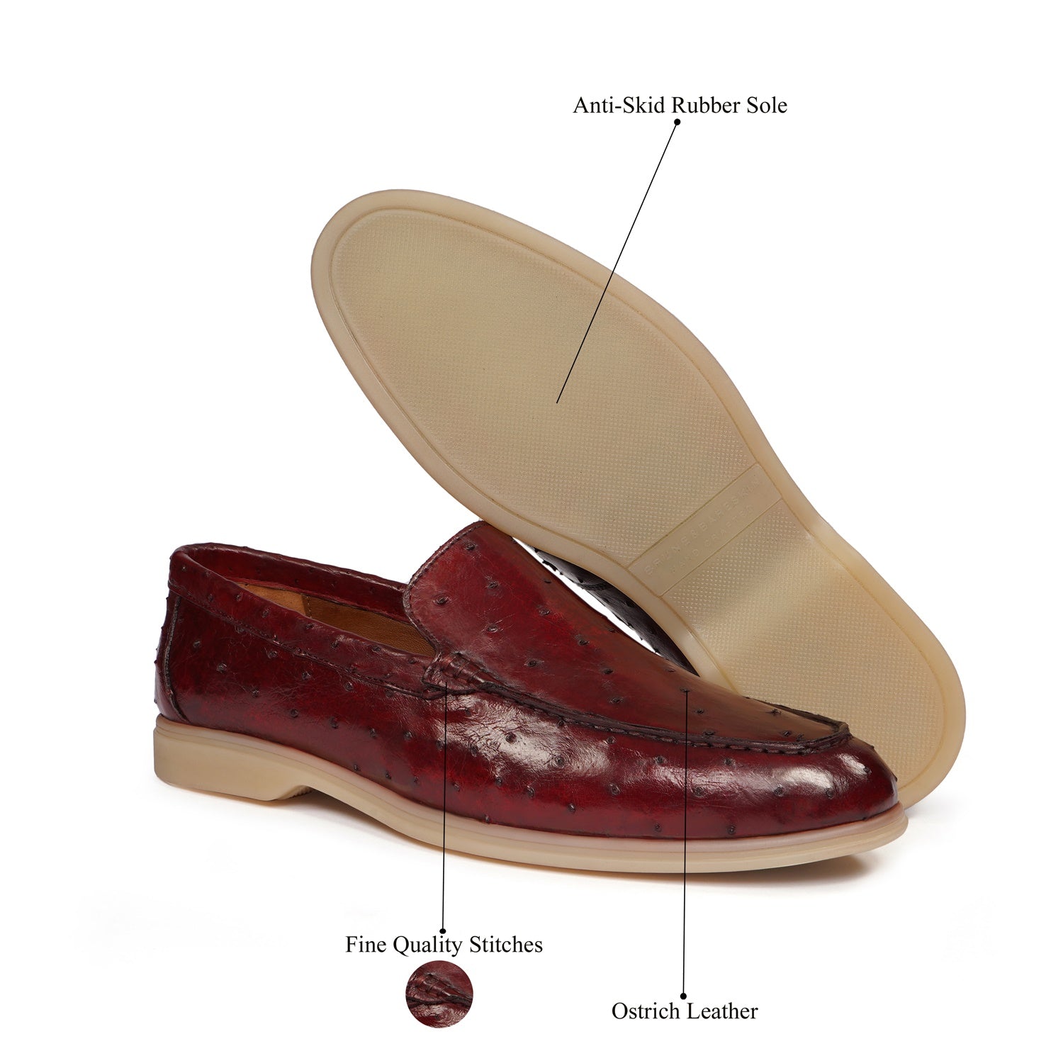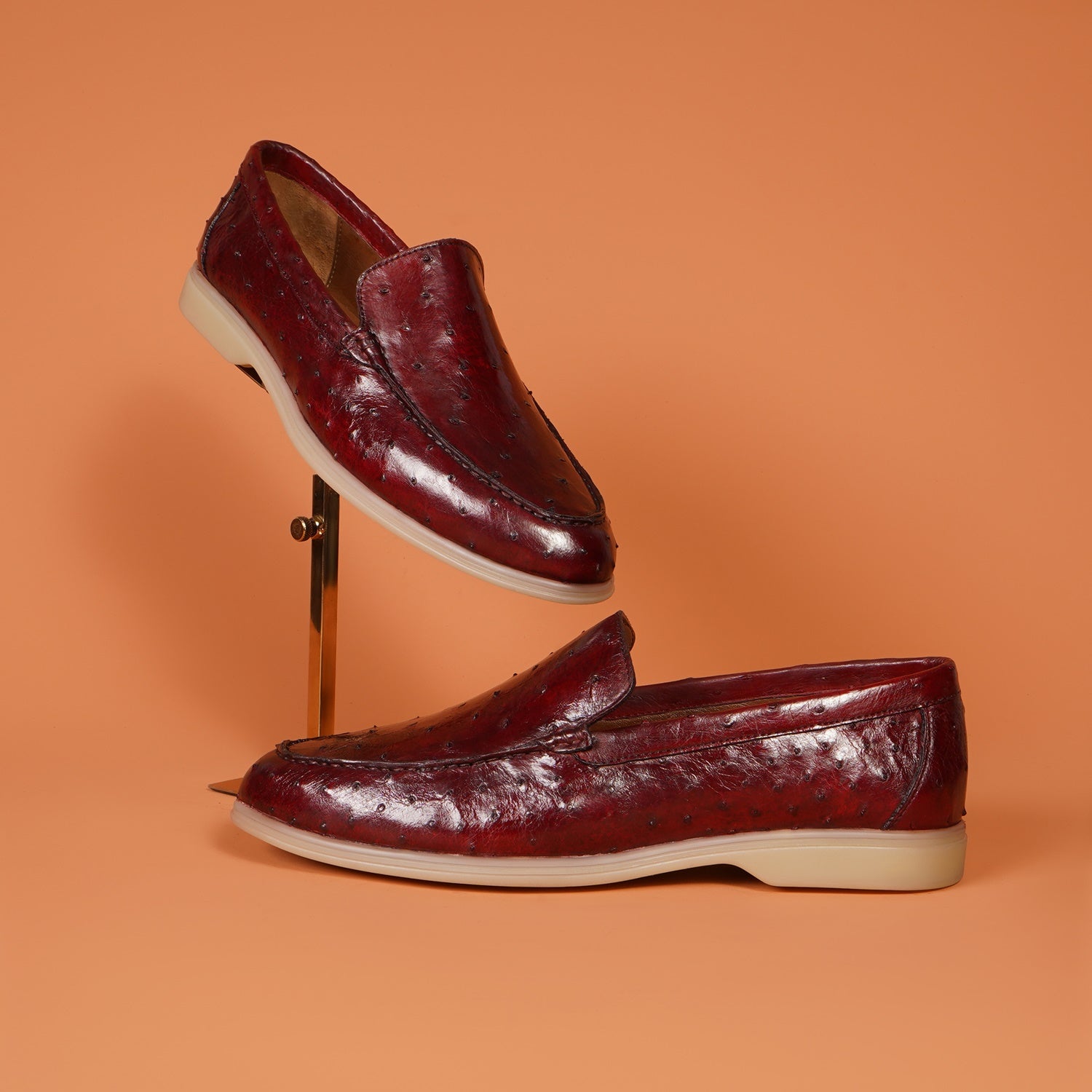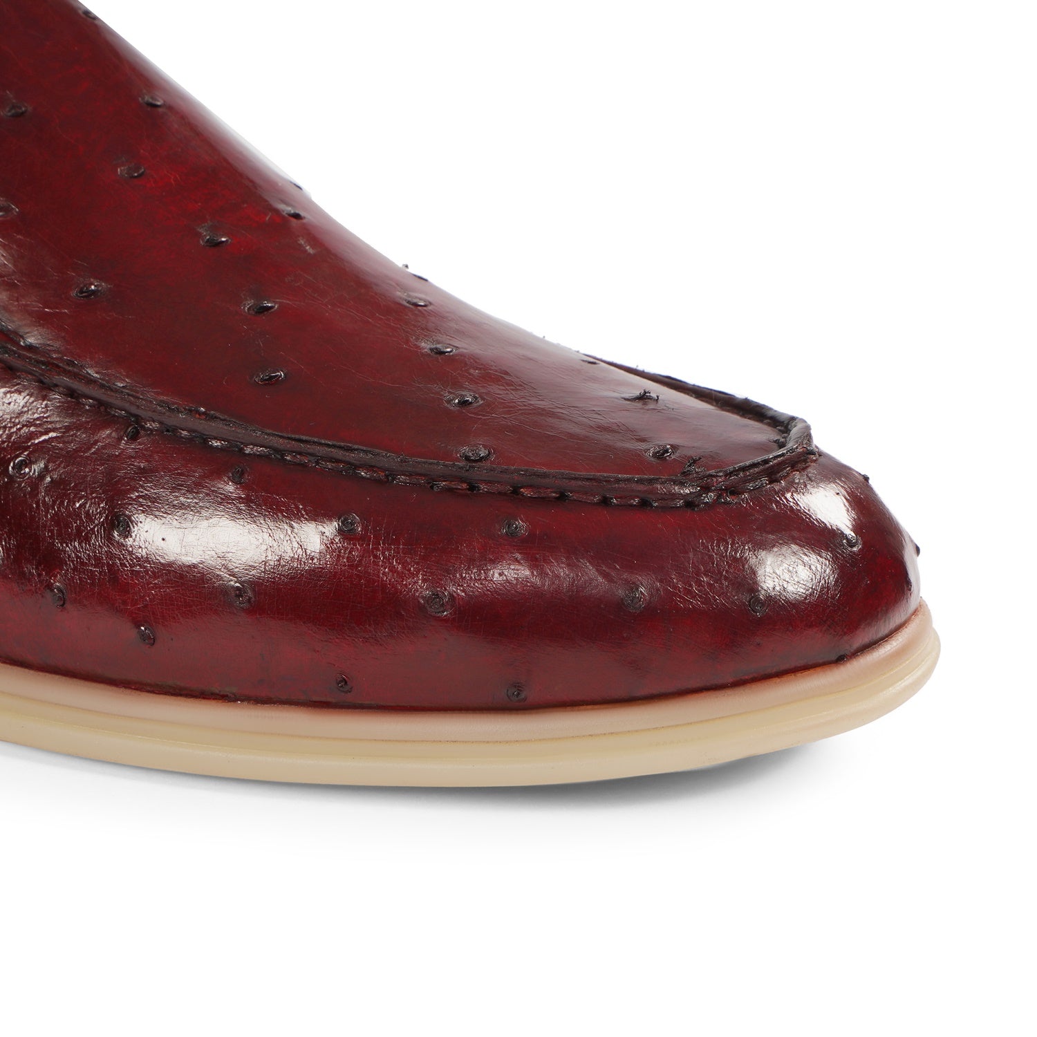 Wine Exotic Ostrich Leather Yacht Slip-On Shoes