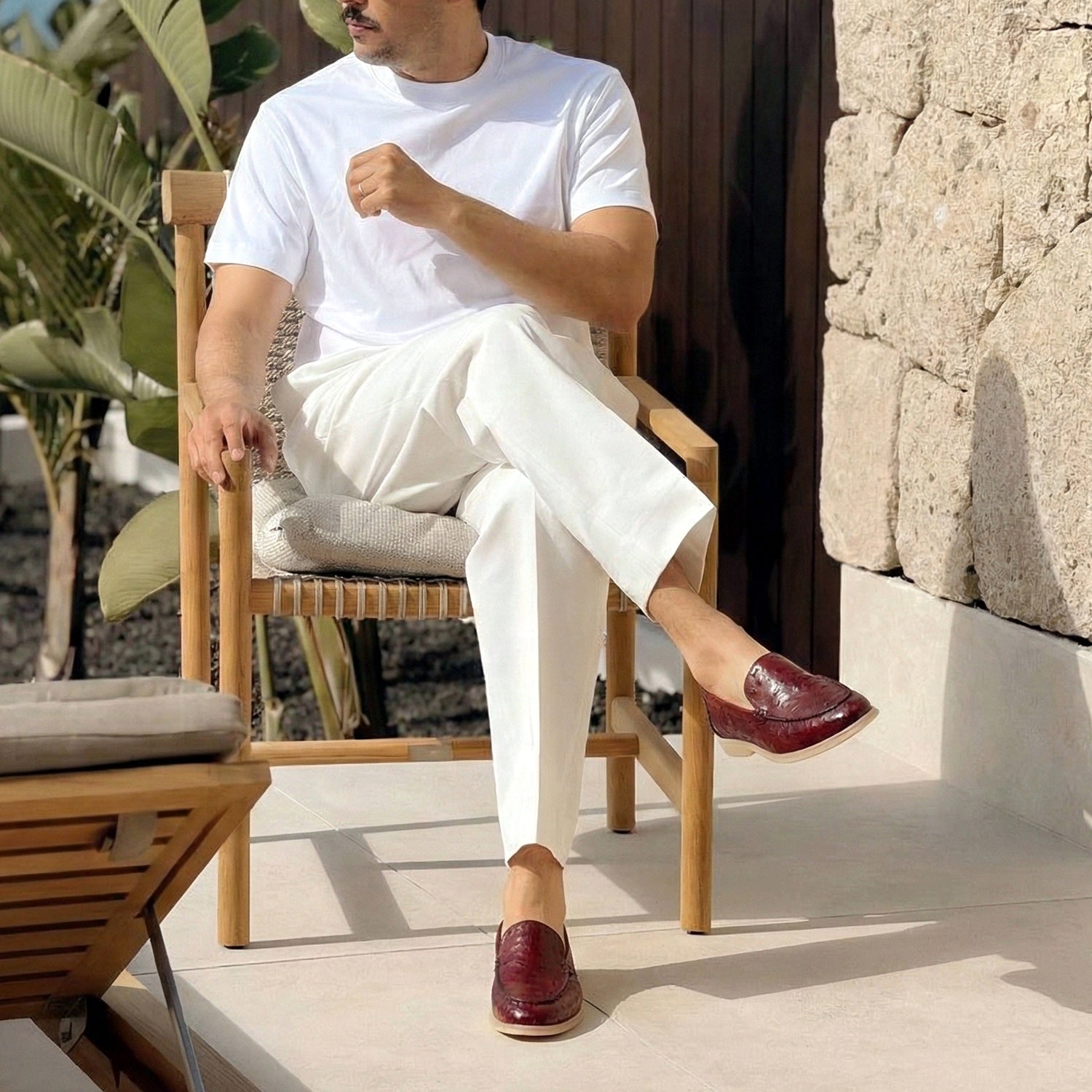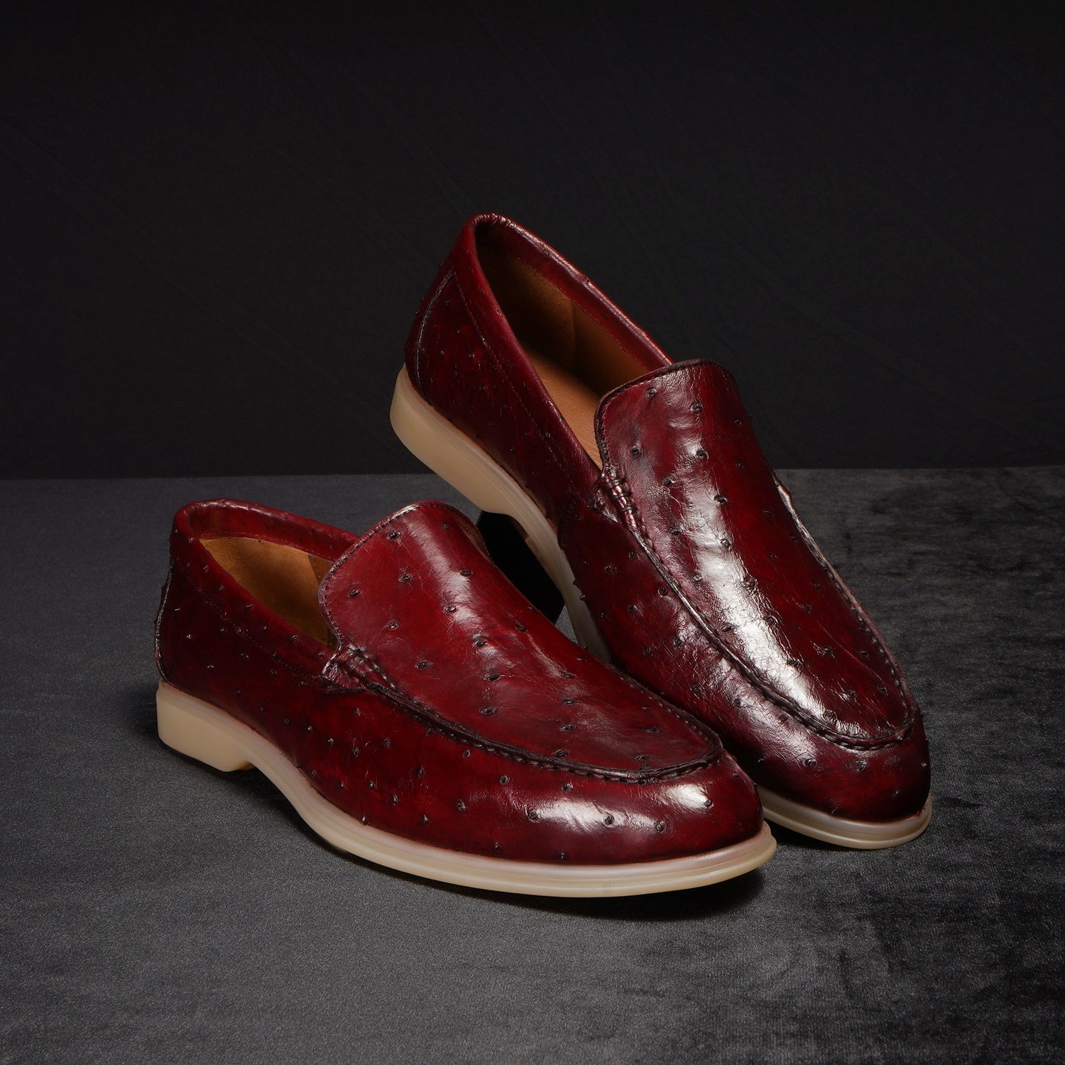 Exquisitely handcrafted from premium exotic ostrich leather, these men's loafers boast a rich. The supple material molds to your feet for unmatched comfort, paired with a well-designed construction and grippy rubber sole—perfect for effortless summer walks on yachts, beaches, or city streets. Slip them on with capris, jeans, or chinos for that polished casual edge.