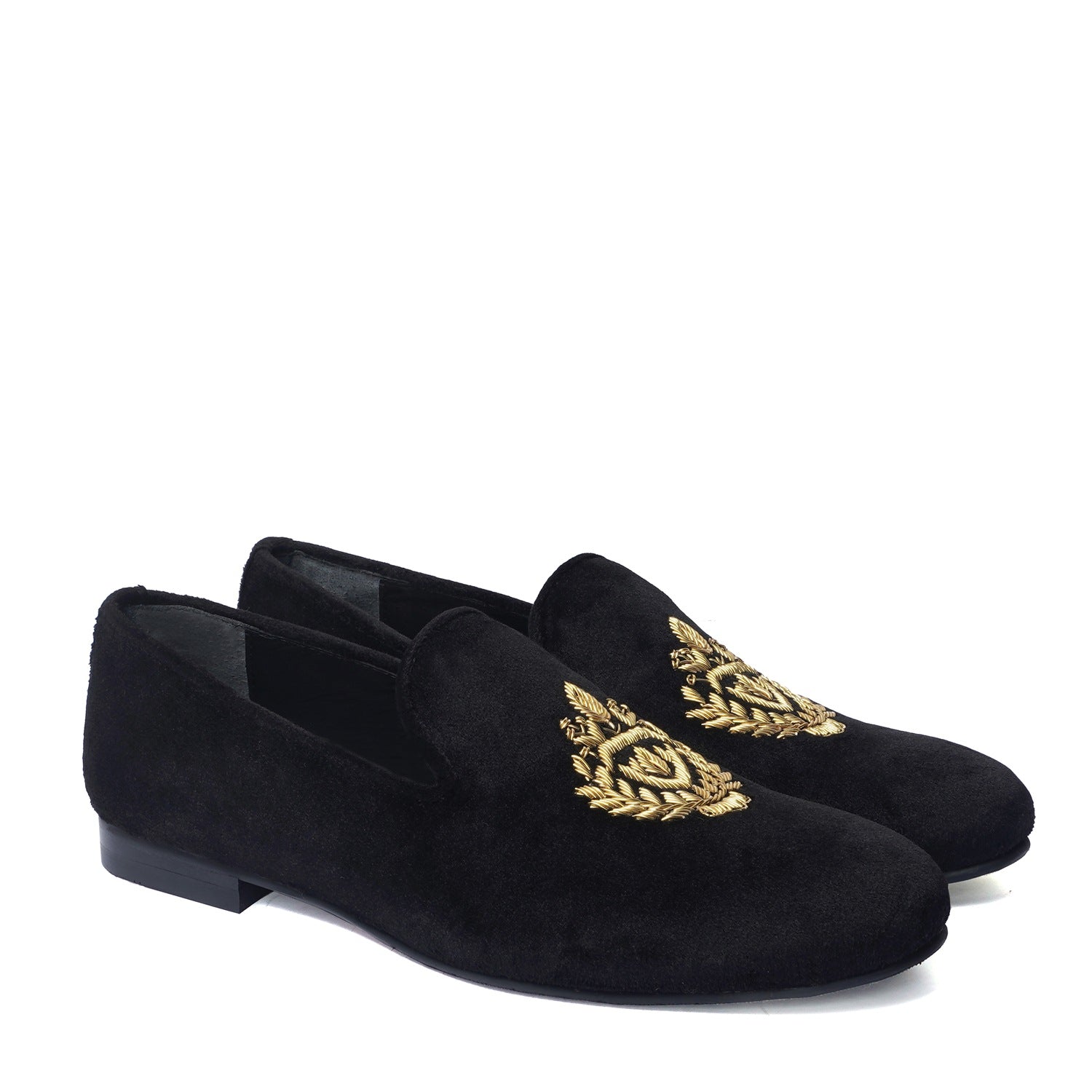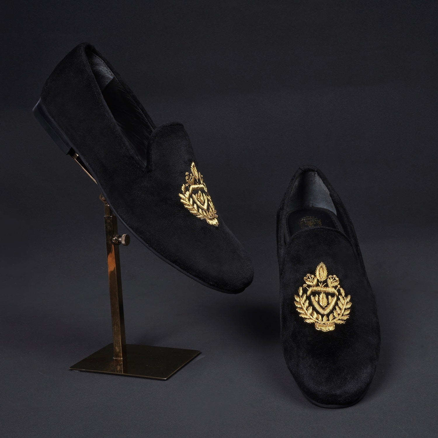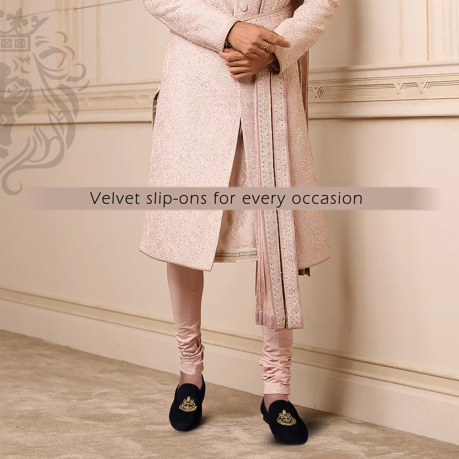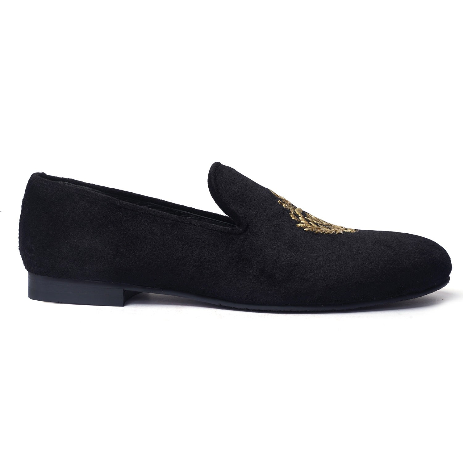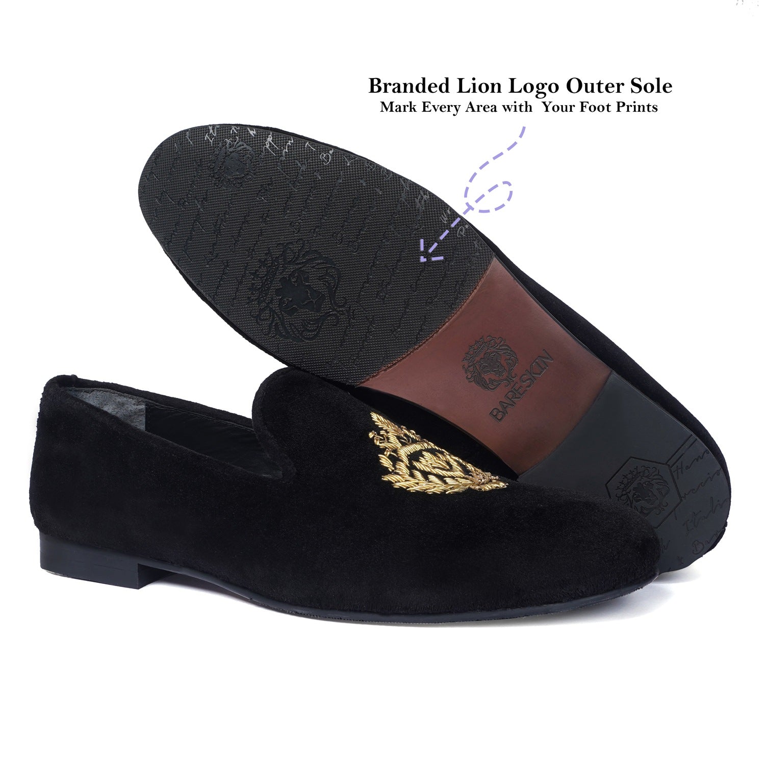 Looking for a stylish and comfortable shoe for weddings and special occasions? Our Zardosi Crest Black Slip-On Shoe by Brune & Bareskin has a classy look and is handmade zardosi crest on the front upper, adding a touch of artistry to your look. The durable leather and cushioned insole provide great comfort, while the laser engraved anti-skid rubber outer sole ensures a classy look with maximum grip. Perfect for weddings and special occasions, these slip-ons are a must-have for any stylish man's wardrobe.