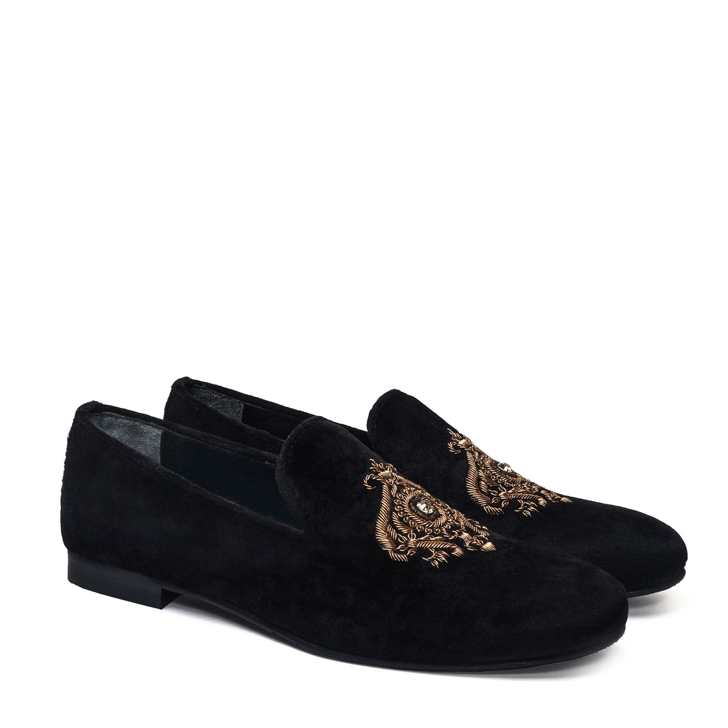 Zardosi Slip-On Shoes In Black Italian Velvet