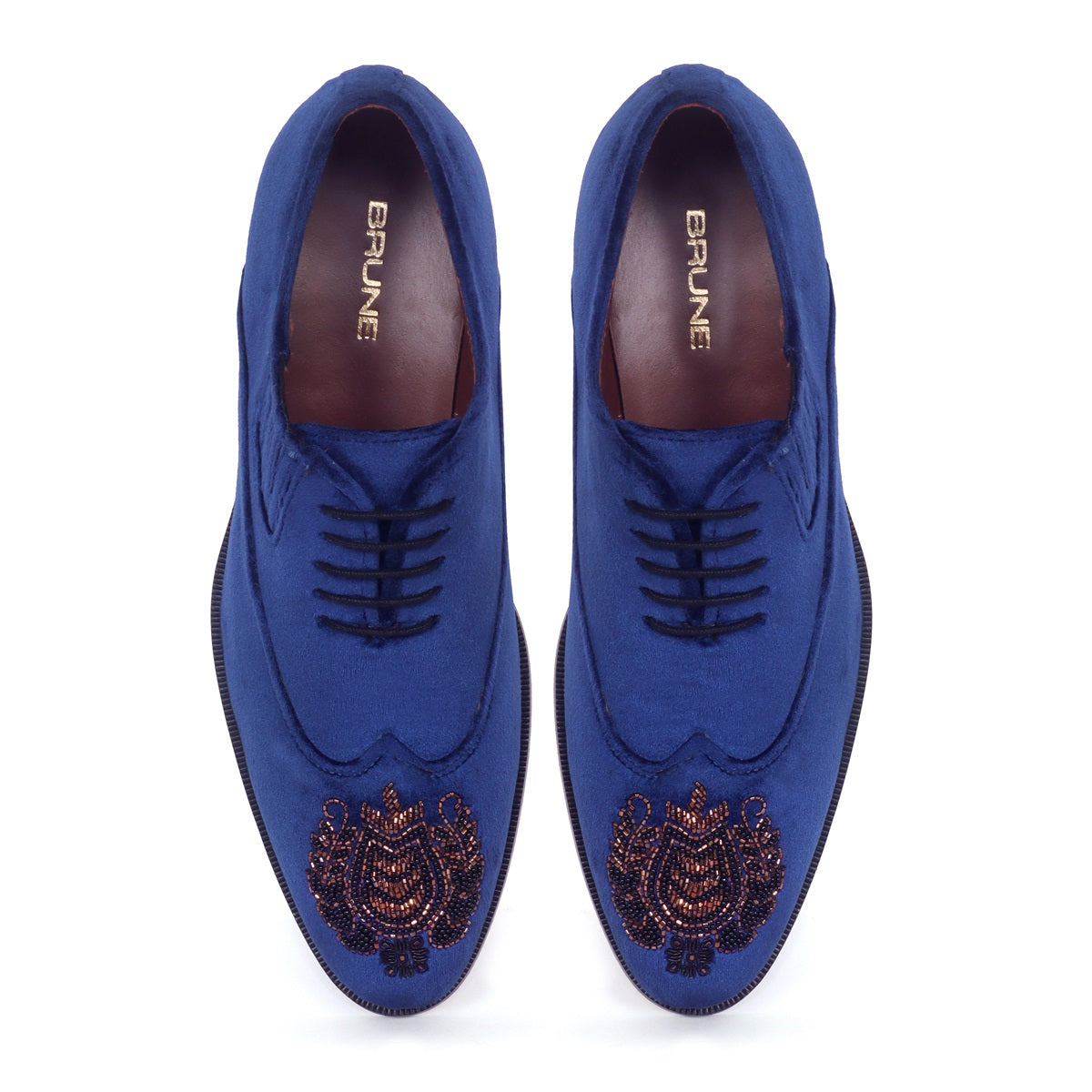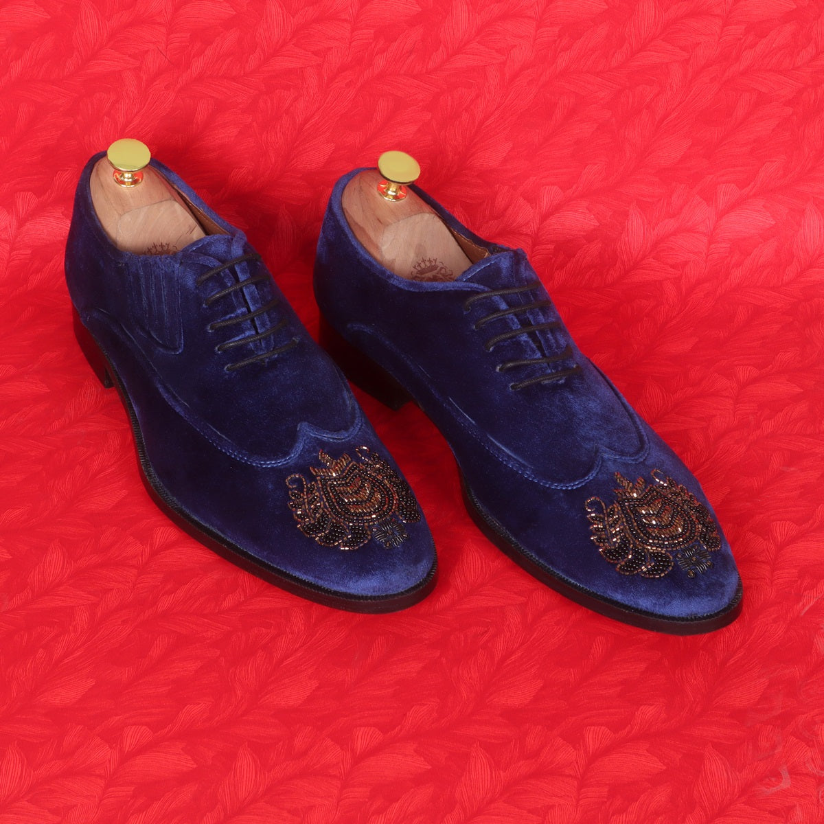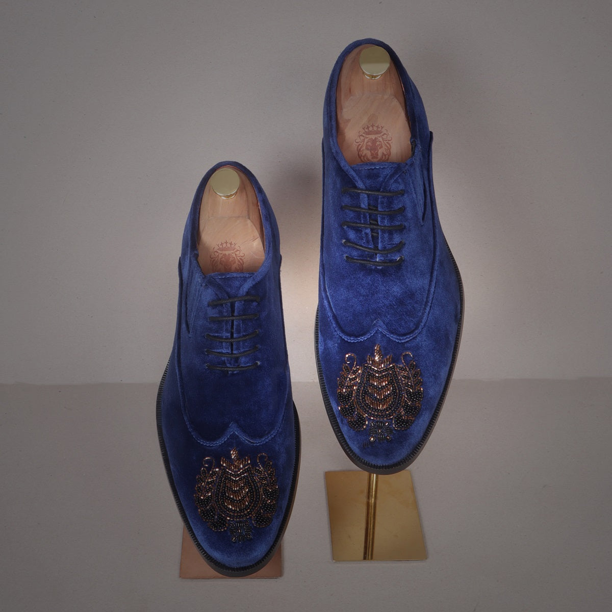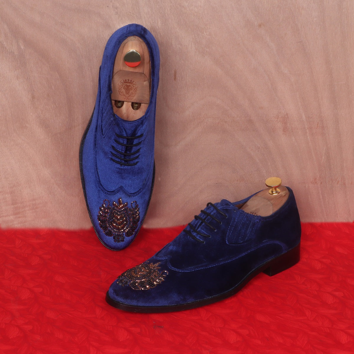 Zardosi Wingtip Blue Velvet Formal Shoes
