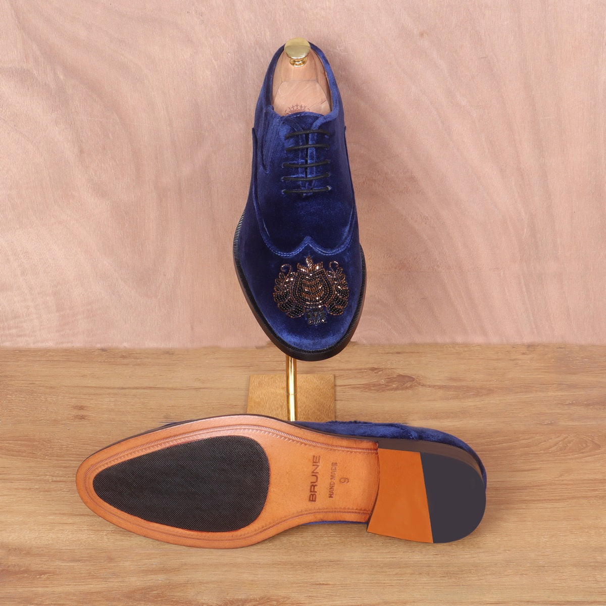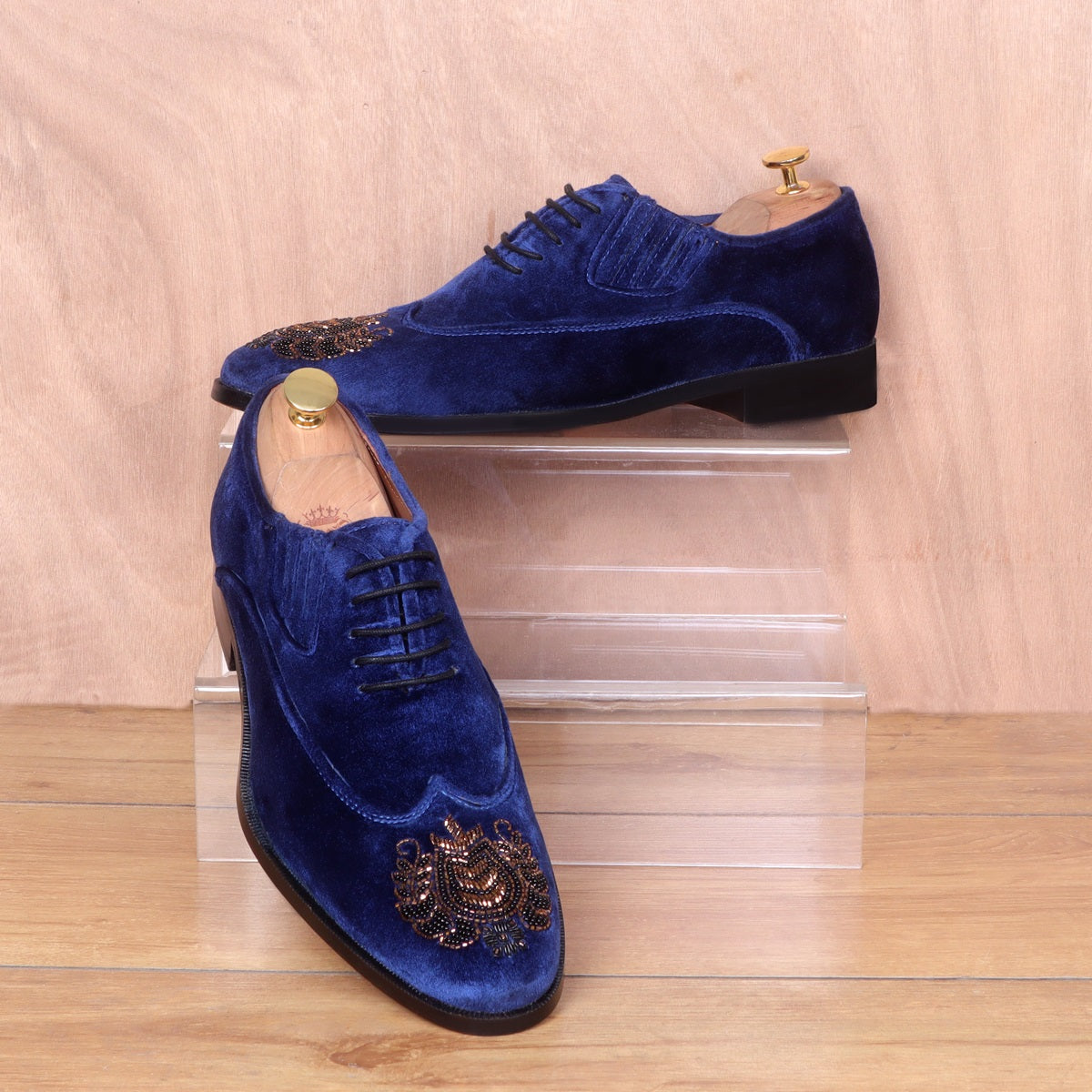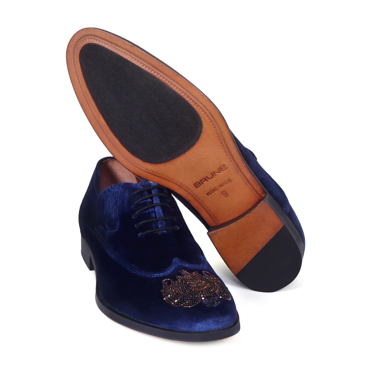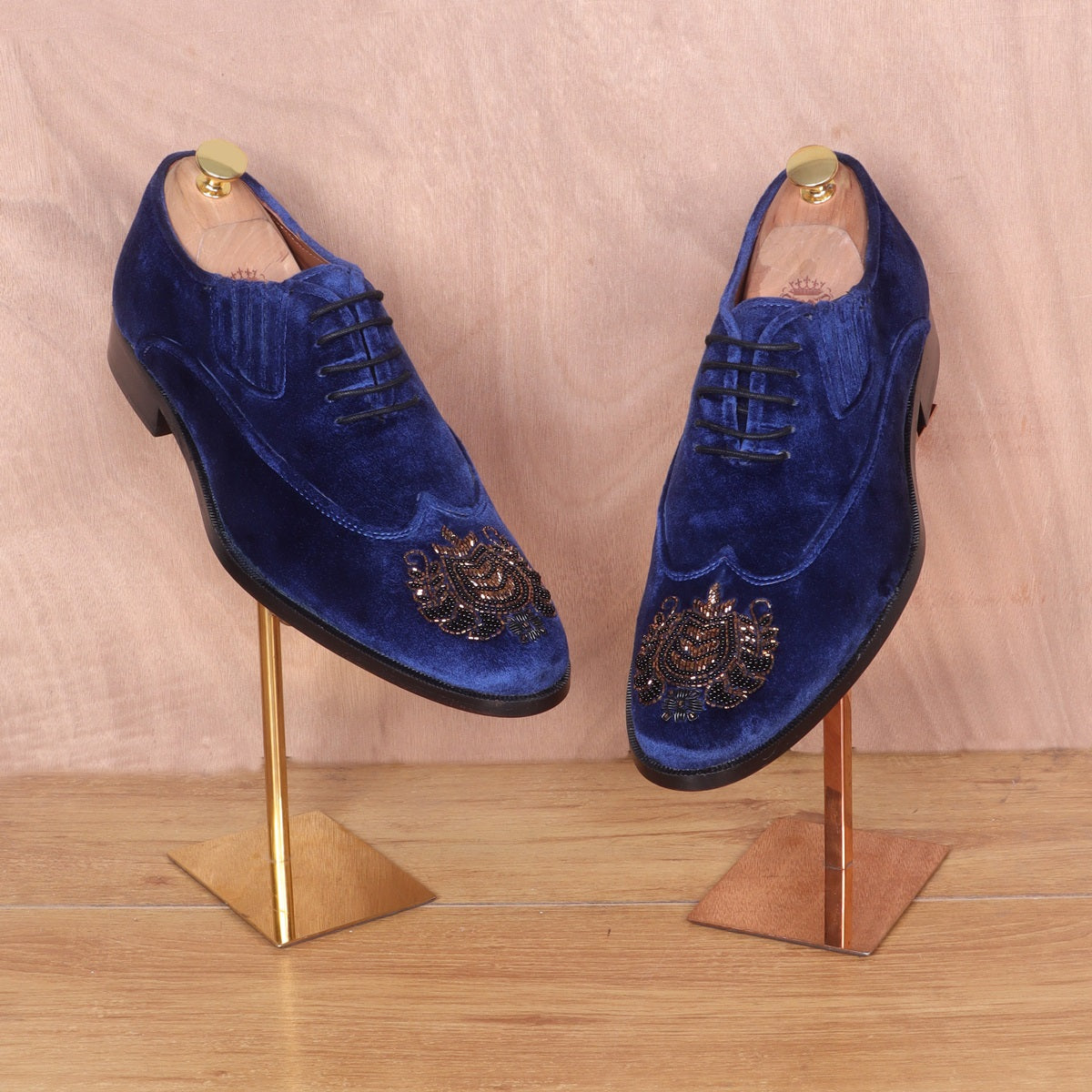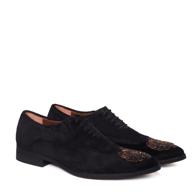 Zardosi Wingtip Blue Velvet Formal Shoes