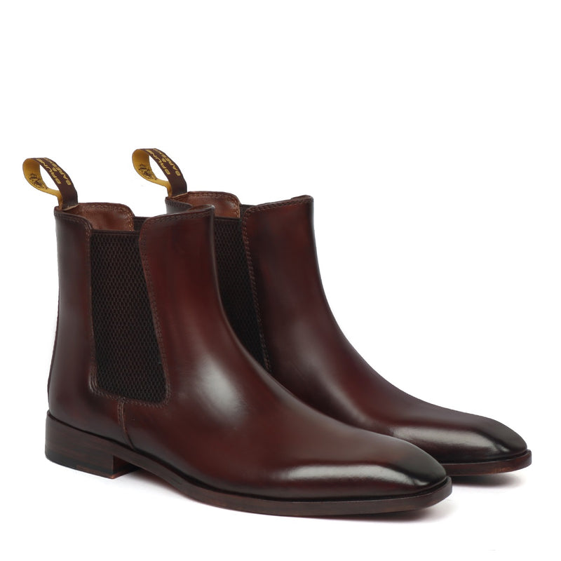 This high-ankle length dark brown suede leather boots can be customized to your liking. Tips of these pointed leather shoes enhance the style statement. This high-ankle length dark brown suede leather Chelsea Boots is a must have in your wardrobe. From the English times till today these boots just cant slow down in the fashion world. These leather boots are a perfect piece of style and trend.