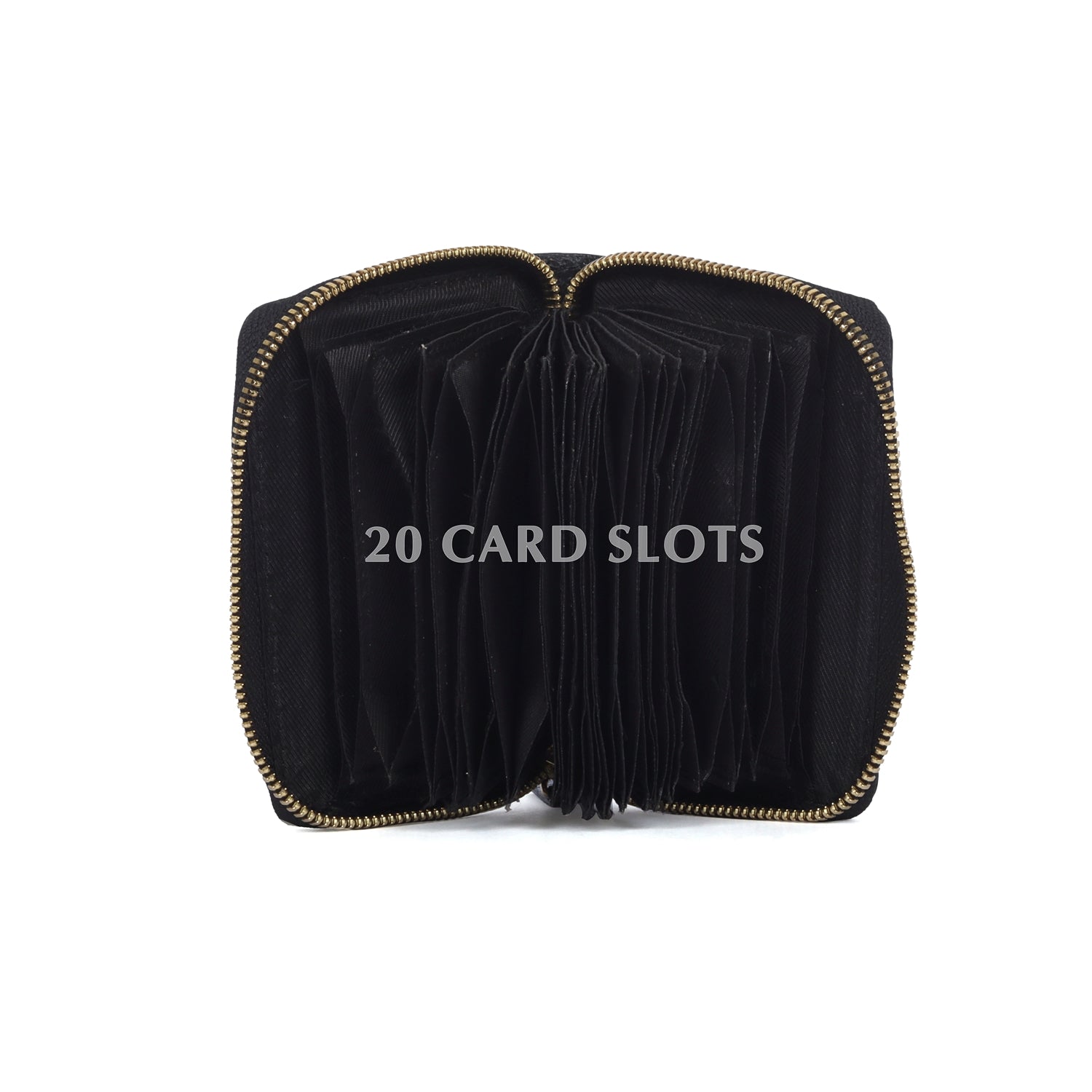 The zipper closure unisex card holder from Brune & Bareskin invites luxury and elegance with beautiful black deep cut croco textured leather. Crafted with painstaking attention to detail, this sophisticated piece is finished with a golden zip closure and a gold finish lion logo. Offering 20 card slots, it's handmade for a unique capacity to impress. Treat yourself to luxury. What are you waiting for? You can click on CUSTOMIZE NOW BUTTON (Just above the "ADD TO CART" button) & fill out the form to submit your customization requirements. Or you can reach us by Call, Email, What's App, and DM.